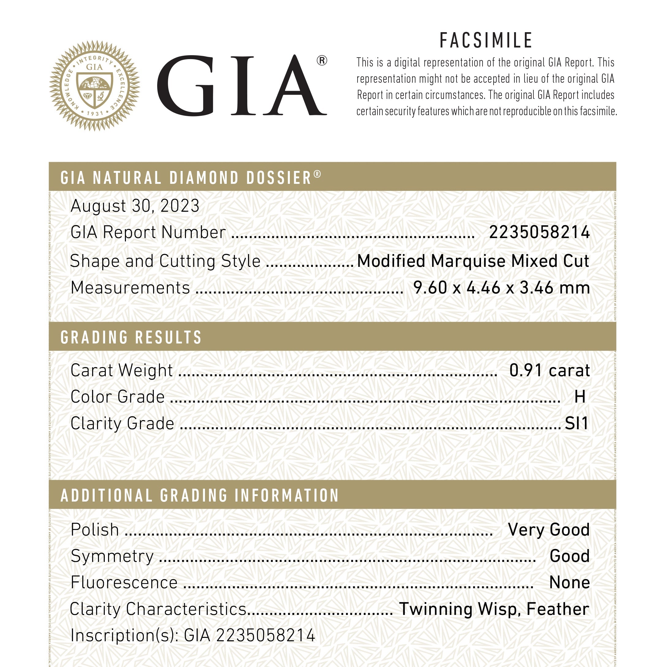 0.91ct 9.60x4.46x3.46mm GIA SI1 H Hexagon Brilliant 23793-01