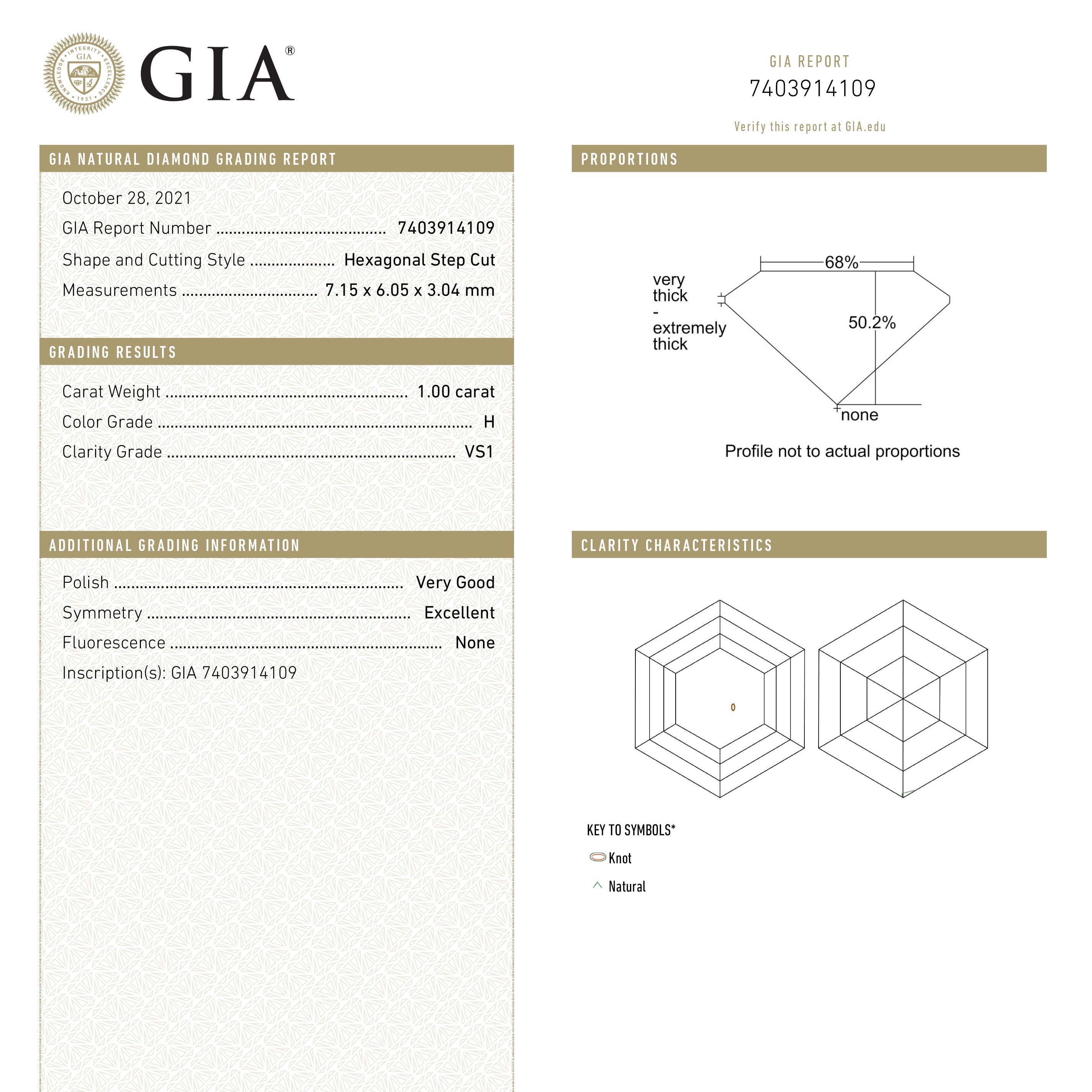 1.00ct 7.15x6.05x3.04mm GIA VS1 H Hexagon Step Cut 21965-01