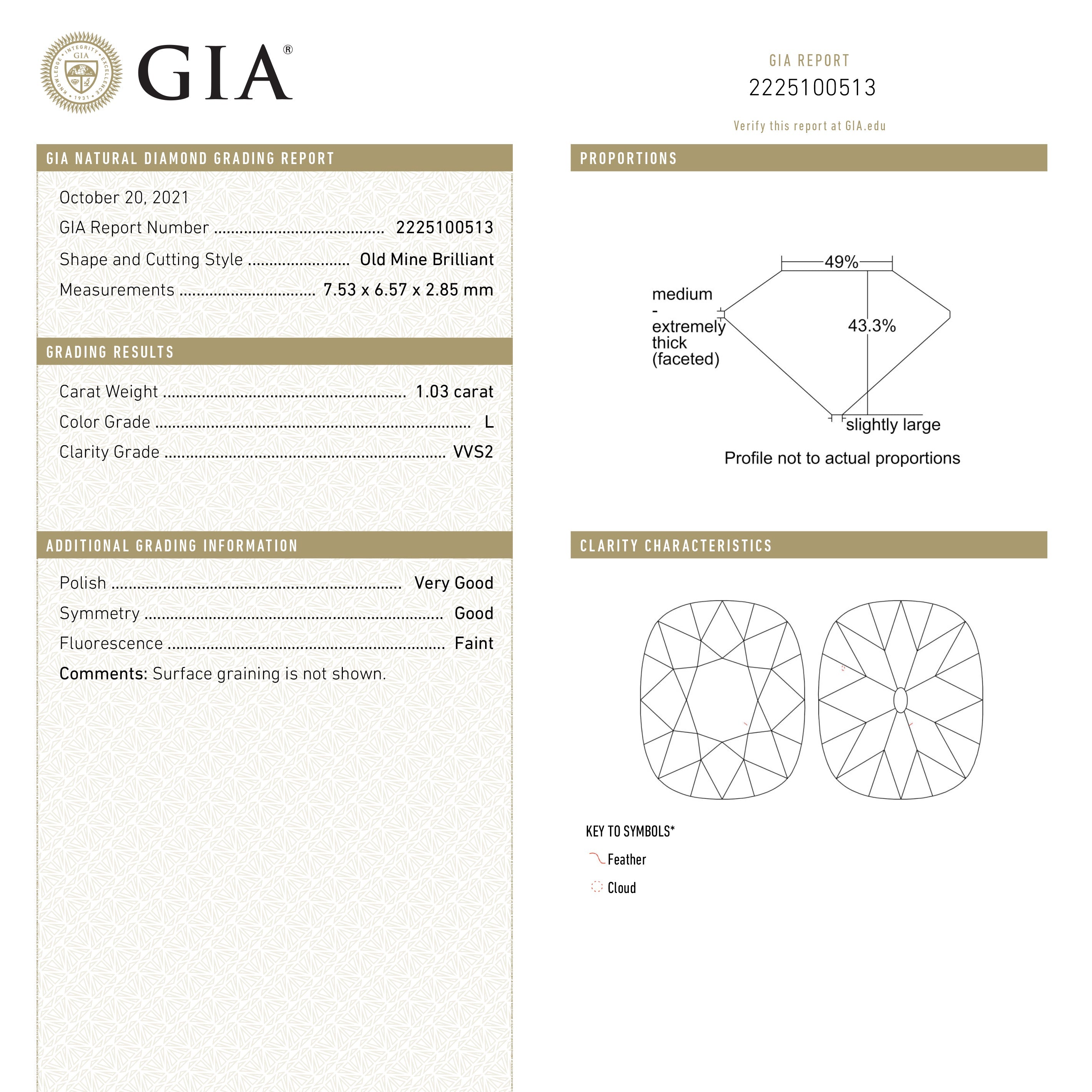 1.03ct 7.53x6.57x2.85mm GIA VVS2 L Modern Antique Old Mine Cut 19392-01