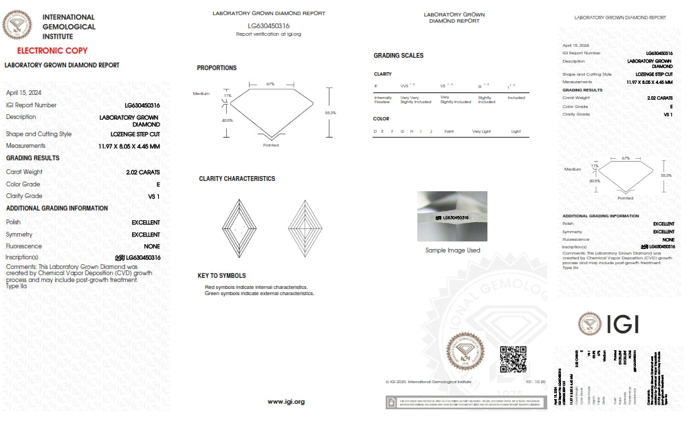 2.02ct | E/VS1 Lozenge Shape Step Cut Lab Diamond (IGI)