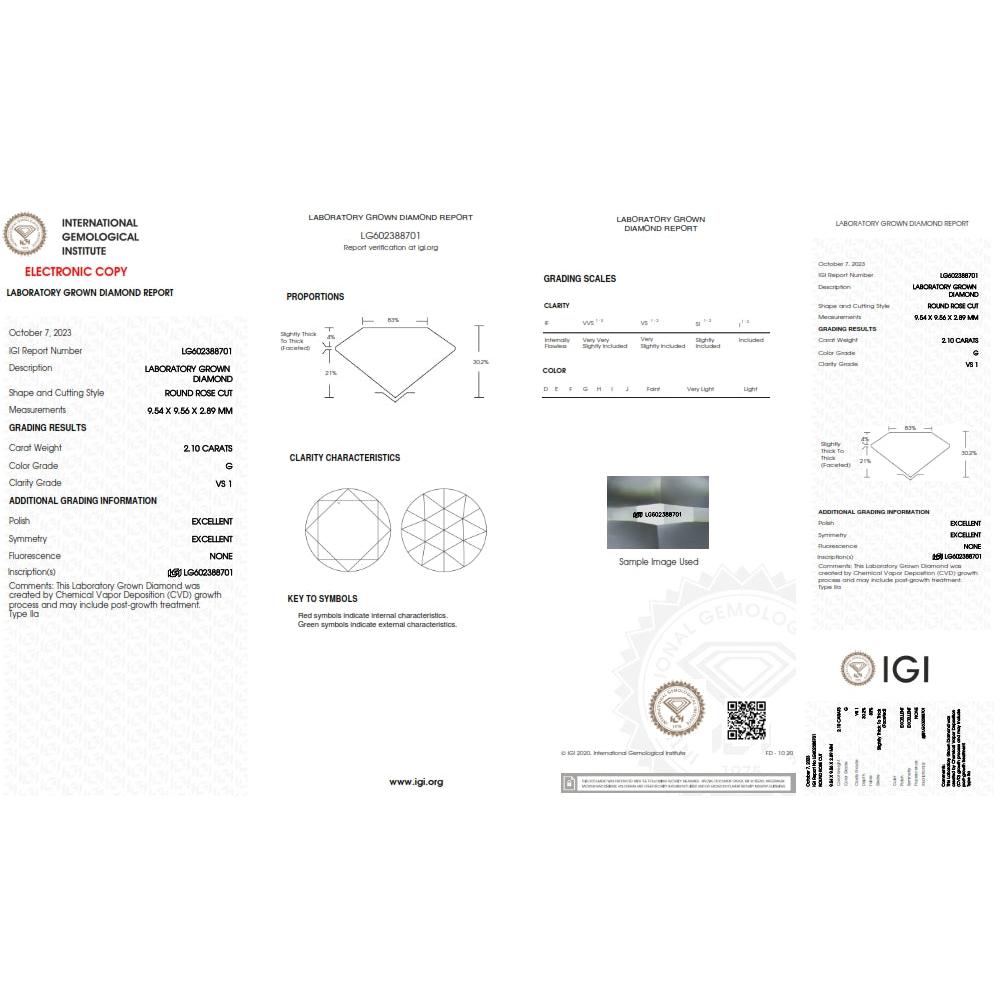 2.10ct | G/VS1 Round Shape Rose Cut Lab Diamond (IGI)