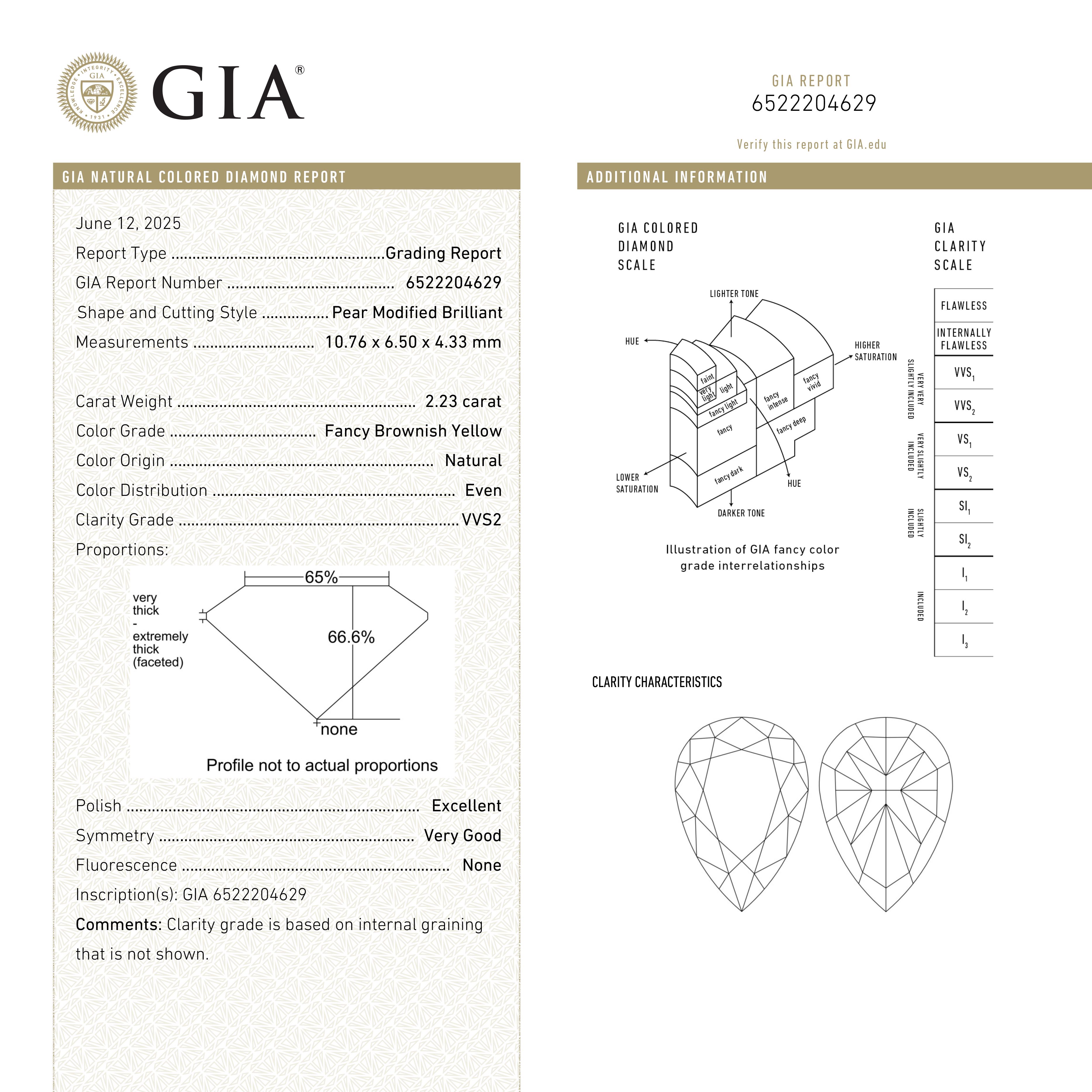 2.23ct 10.76x6.50x4.33mm GIA VVS2 Fancy Brownish Yellow Pear Brilliant πŸ‡¨πŸ‡¦ 27709-01