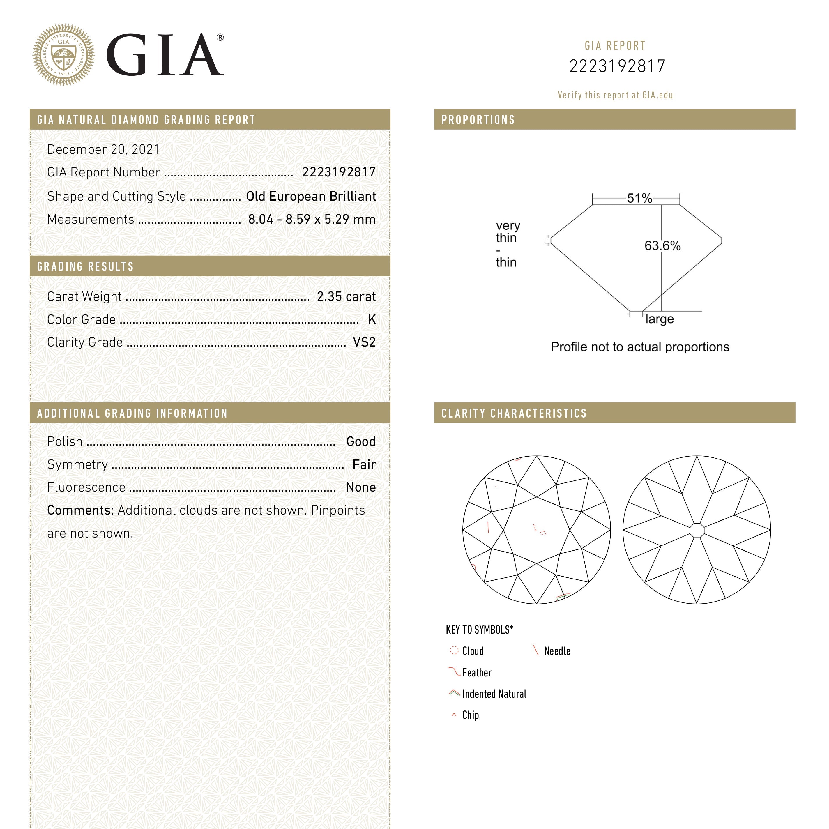 2.35ct 8.59x8.04x5.29mm GIA VS2 K Antique Old European Cut 21677-01