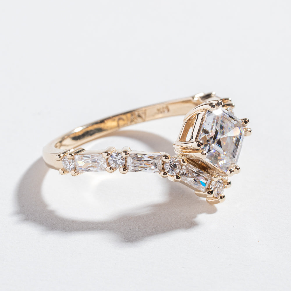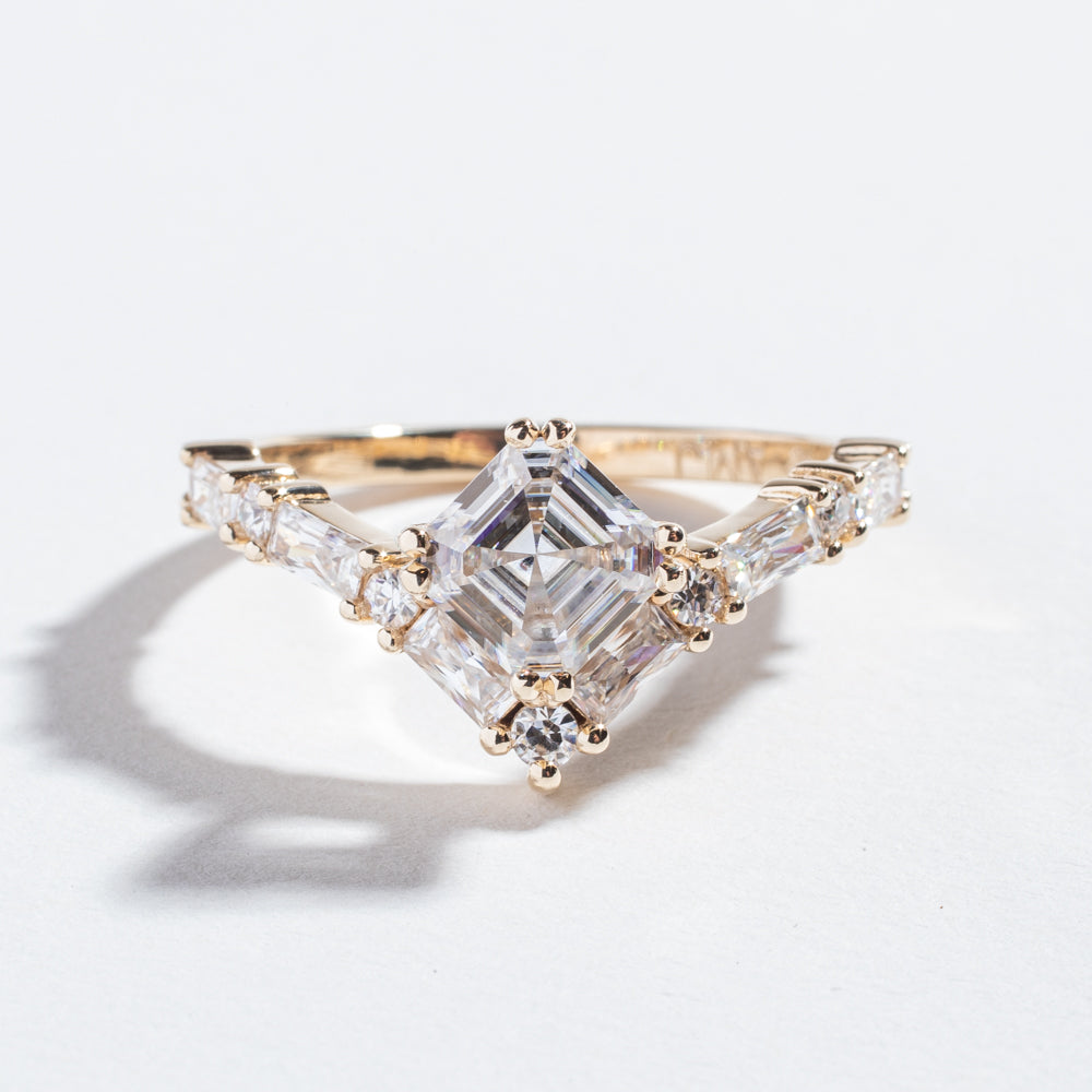 ASSCHER CUT CHEVRON BAND ENGAGEMENT RING