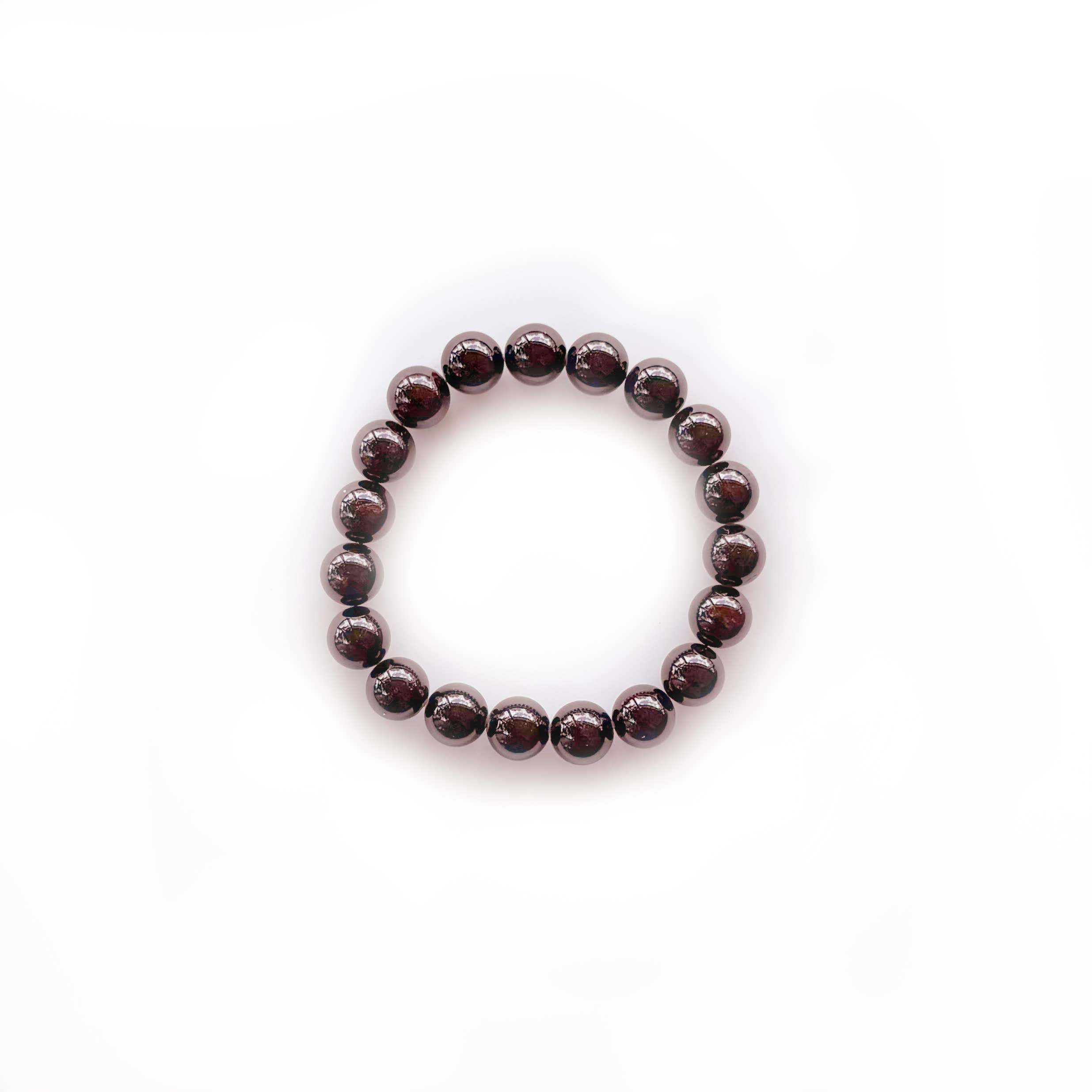 Fuel your fire. Live out loud. The Raise Some Heck bracelet features bold Garnet gemstones — a stone of passion, vitality, and unstoppable energy. Known to ignite courage, strength, and motivation, Garnet is your go-to gem for chasing dreams, breaking rules (the good kind), and living your wild and precious life to the fullest. * Strung on durable stretchy cord * Fits wrist sizes 6.0 inches - 7.0 inches * Bead size 10mm * Comes on with a thick info card, making a great gift!