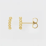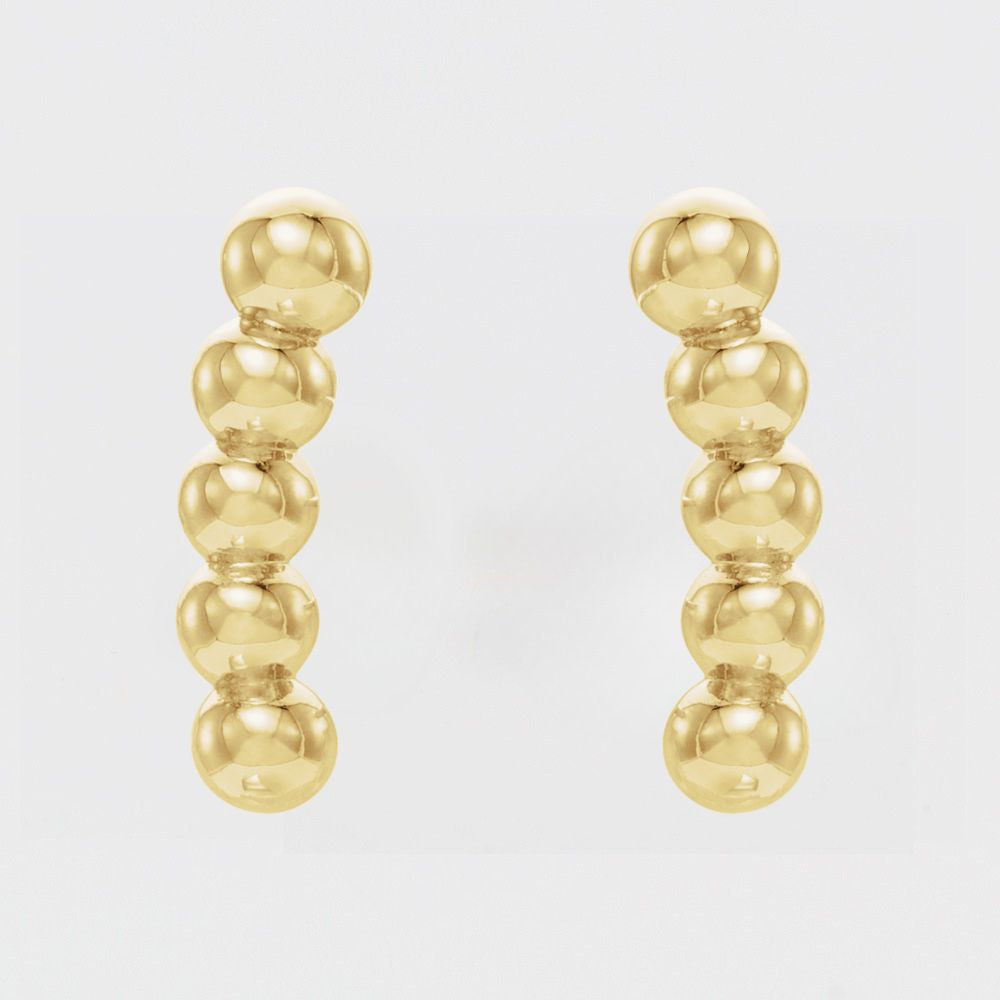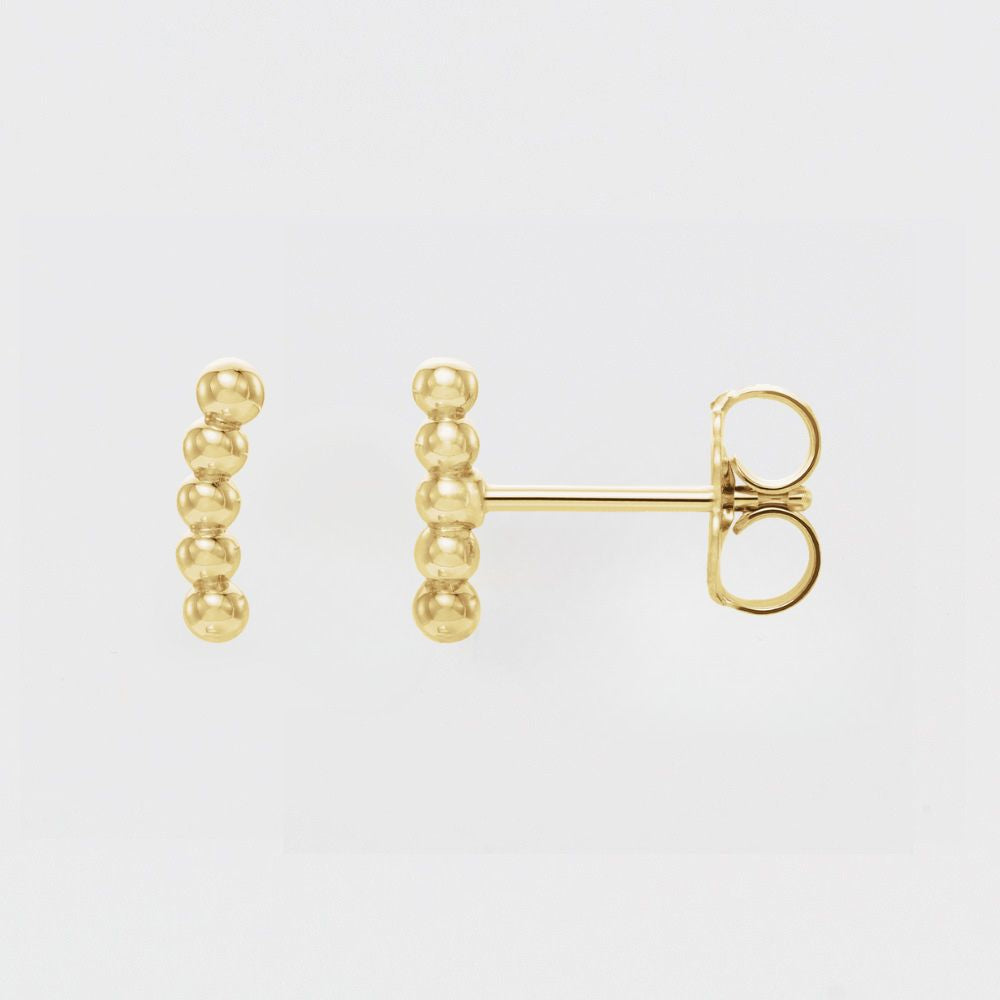 Delicate curved studs crafted in 14K gold with intricate beading detail. The gentle arc design sits beautifully against the ear, while the lustrous gold finish catches light with every movement.