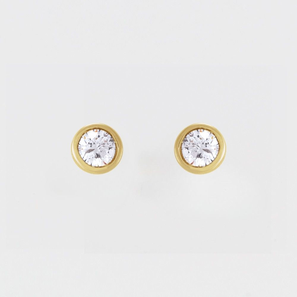 These 14K gold diamond studs feature a secure bezel setting that showcases each stone beautifully while protecting the diamonds. The flat back design ensures comfort for all-day wear, making these studs perfect for everyday luxury or special occasions.