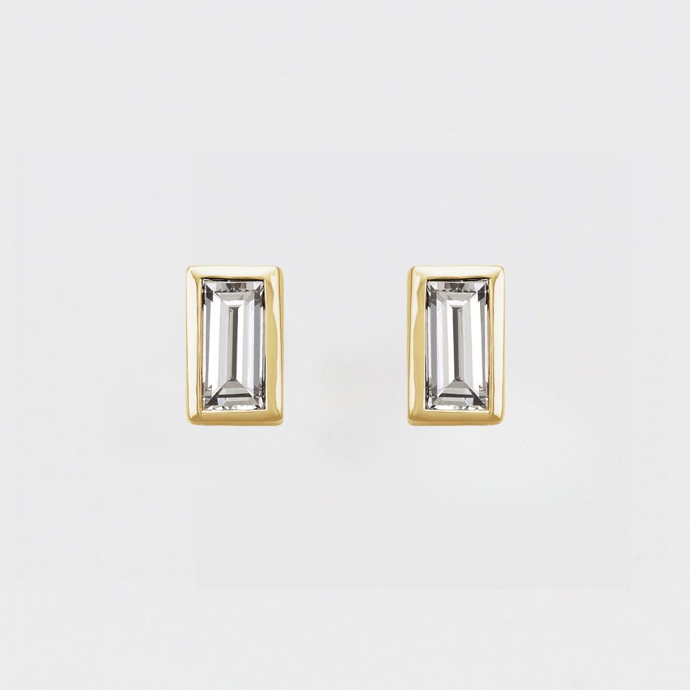 BEZEL SET NATURAL DIAMOND BAGUETTE STUDS | 14K