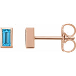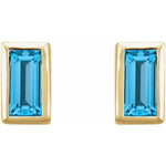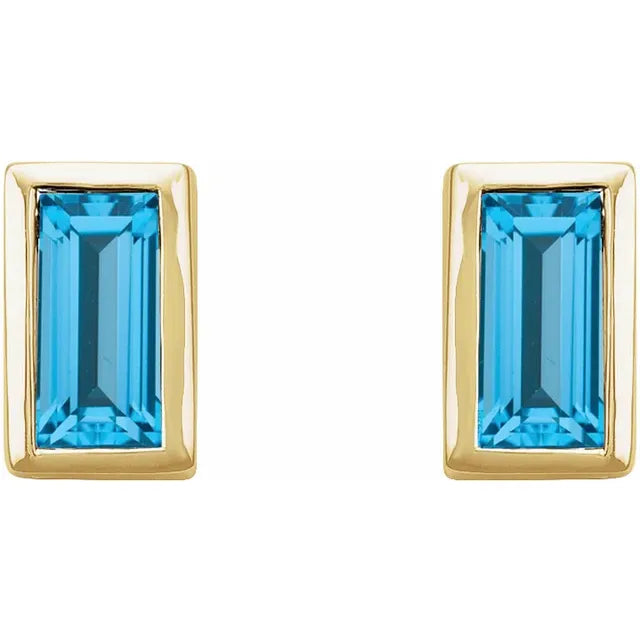 BEZEL SET SWISS BLUE TOPAZ BAGUETTE STUDS | 14K