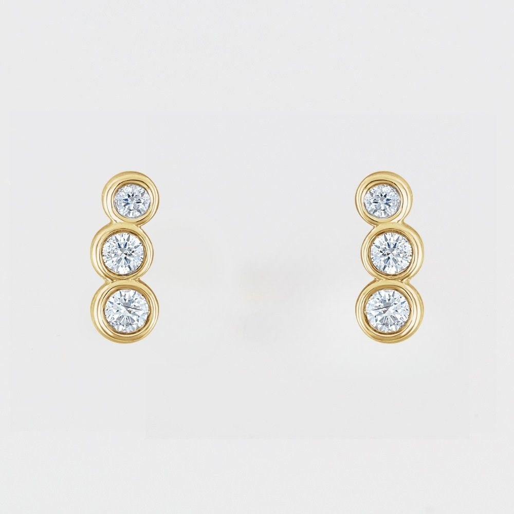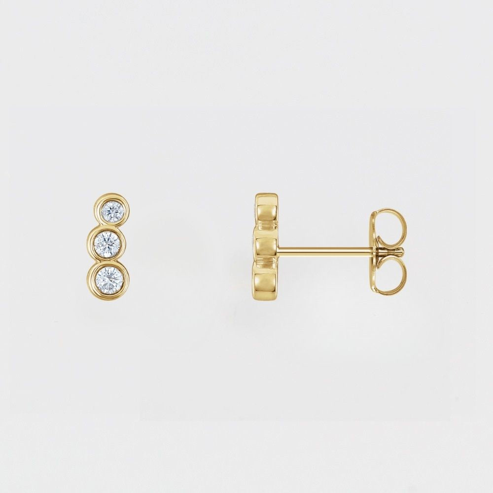 BEZEL SET THREE STONE STUDS | 14K | NATURAL DIAMOND