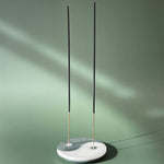 A combination of white granite and smooth black soapstone form a yin yang and make the perfect accompaniment to your balanced incense ritual. This burner can hold two incense sticks simultaneously- sure to fill any sanctuary or retreat space. • 4″ INCENSE BURNER • STONE