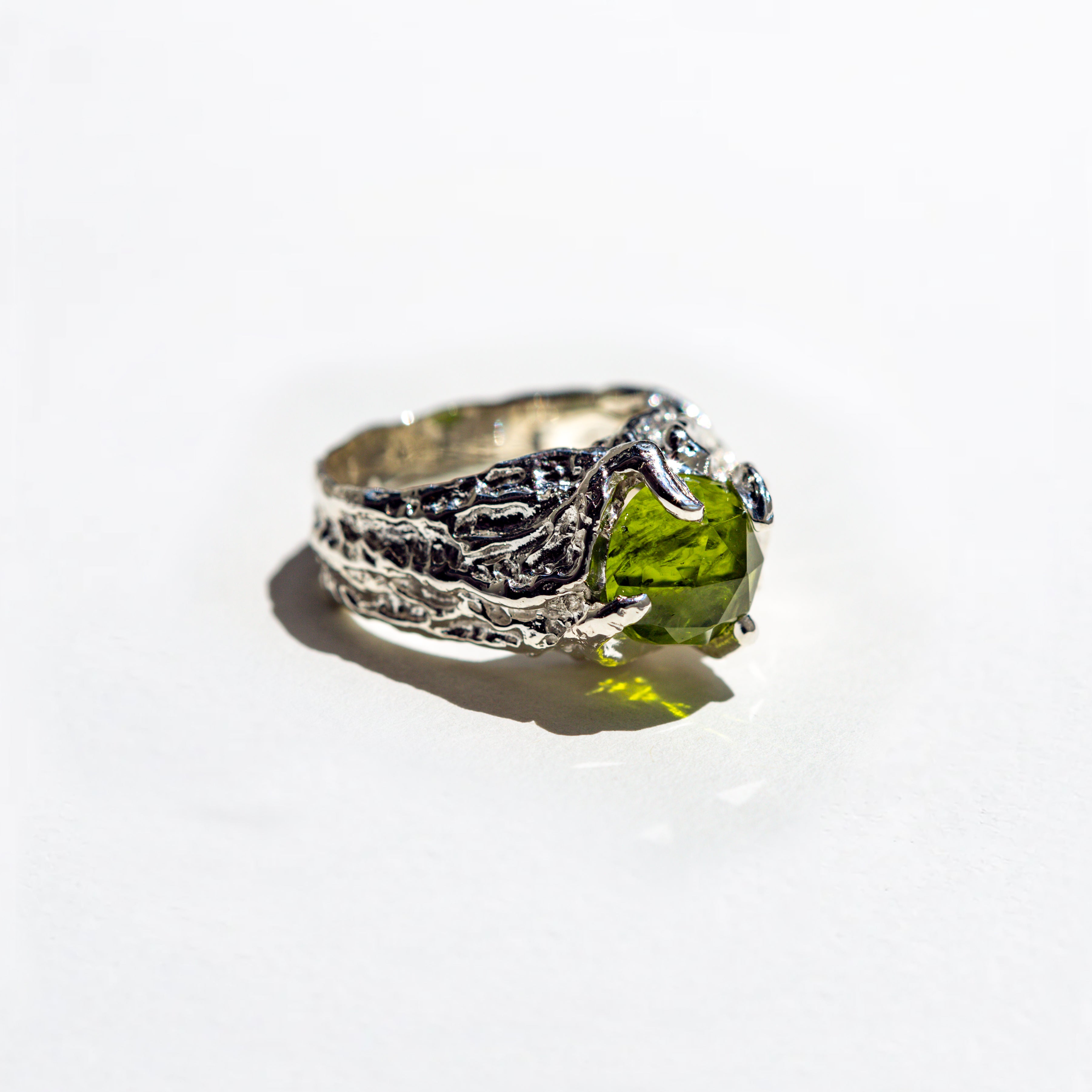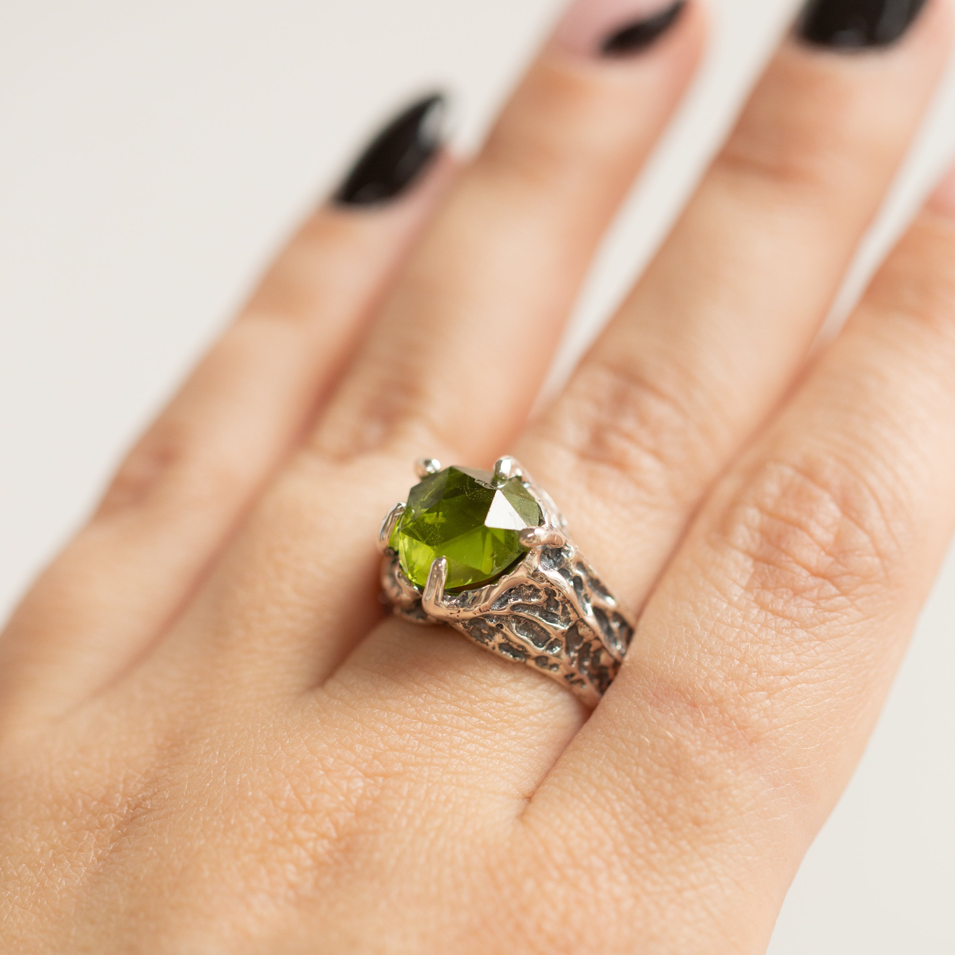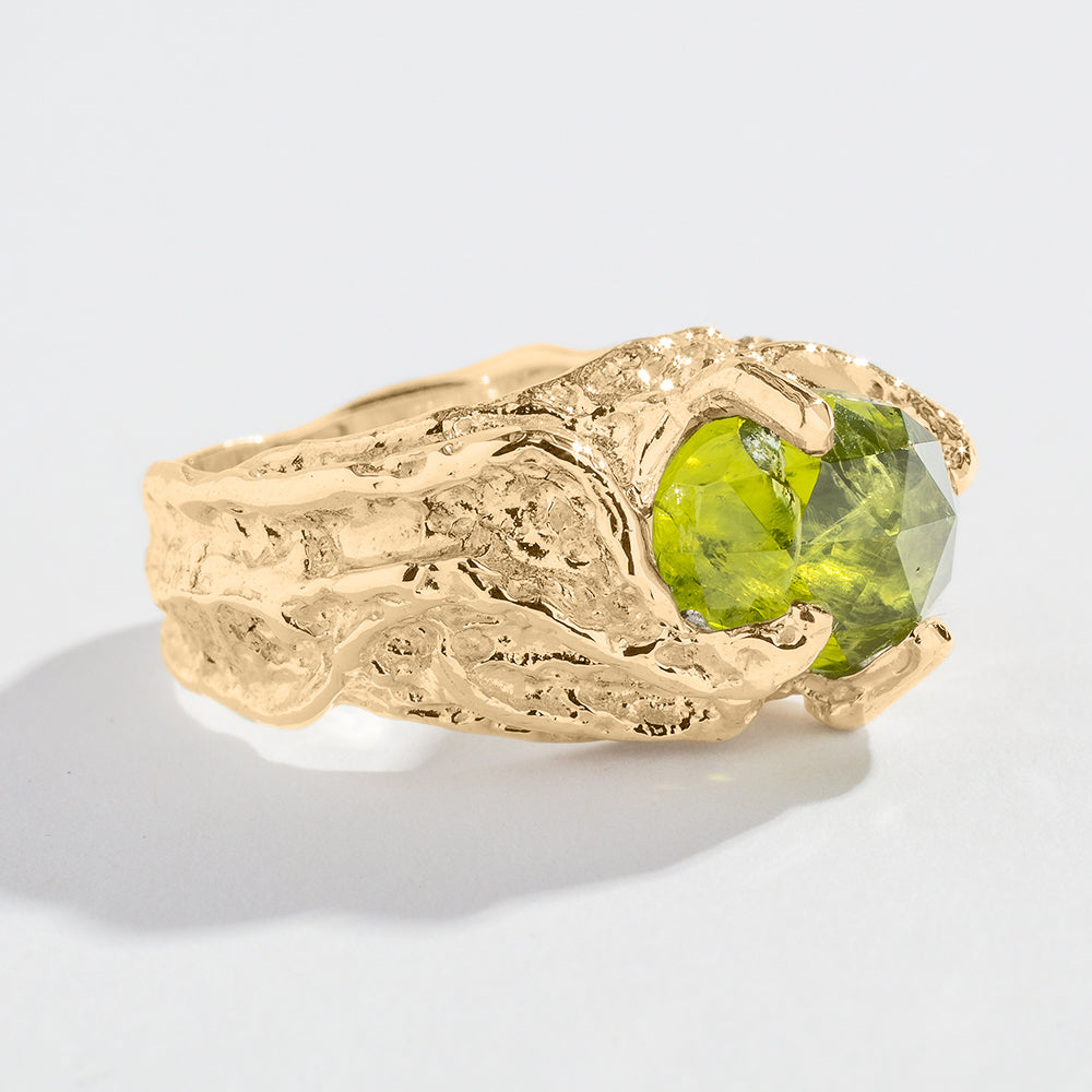 Angela Monaco's Caldera ring - now with a twist! Peridot is a cheery, green stone that promotes healing, rest, and creativity.