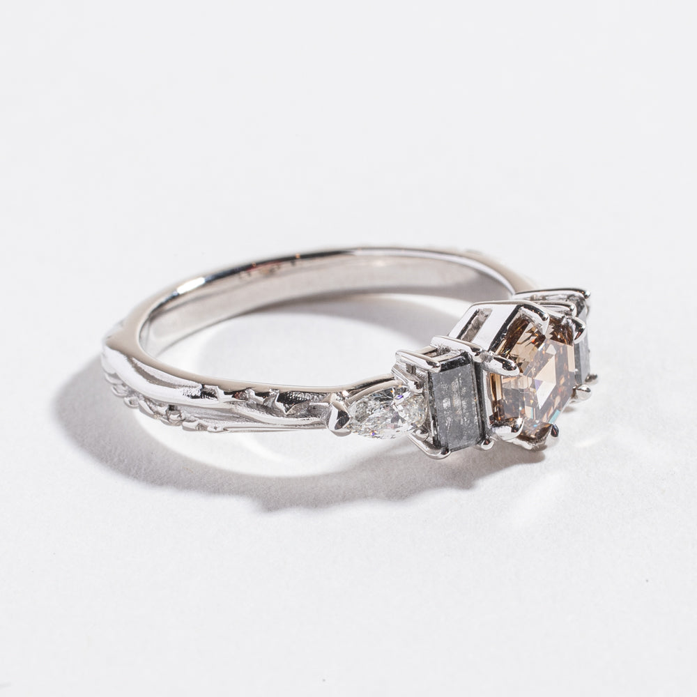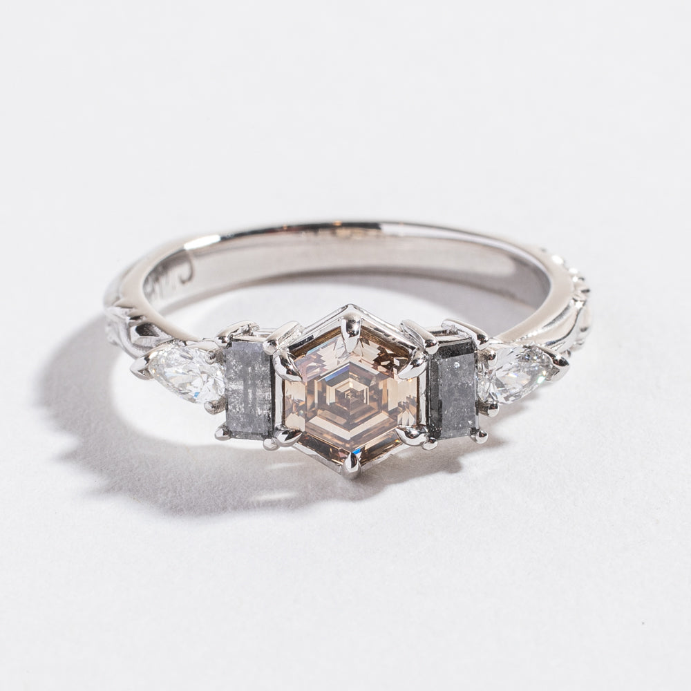 CHAMPAGNE DIAMOND HEXAGON 5 STONE ENGAGEMENT RING