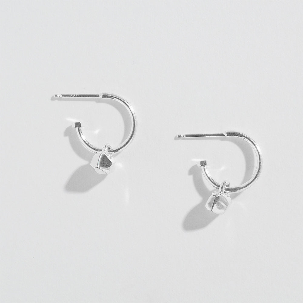 Part of Angela Monaco's newest nugget earrings collection, this pair consist of petite solid 14K yellow gold Tiny Hoops. A solid 14K Yellow Gold AMJ signature teeny nugget dangles at the base of the earring for an added layer of luxury.
