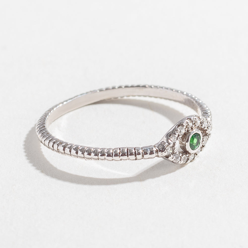 DIAMOND EVIL EYE RING | 14K GOLD & EMERALD