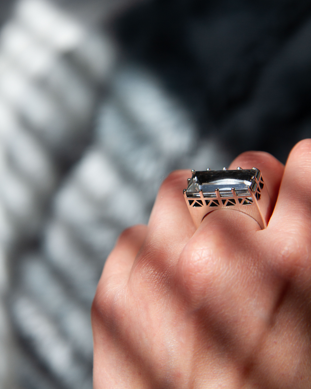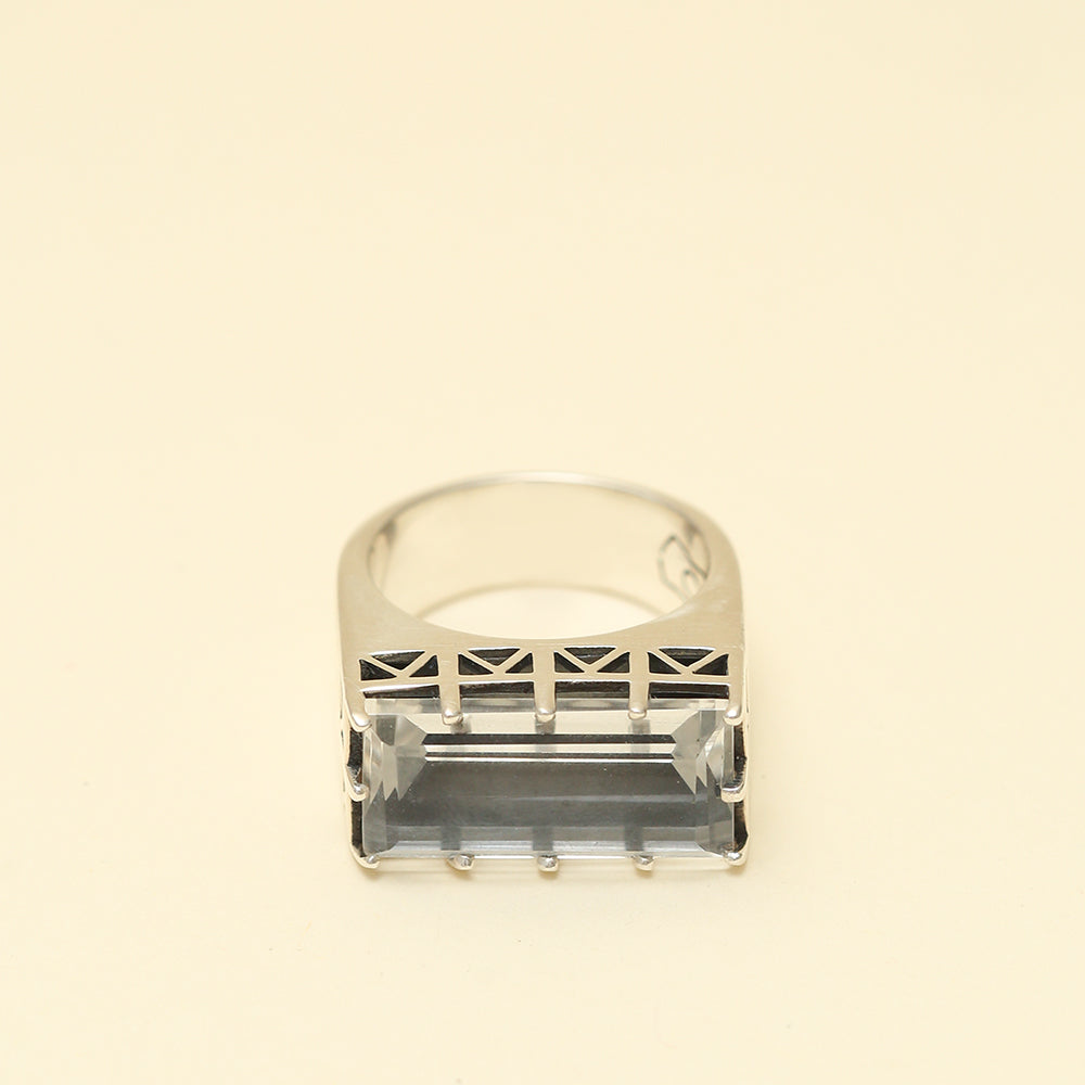 EAST WEST STATEMENT RING | CLEAR QUARTZ