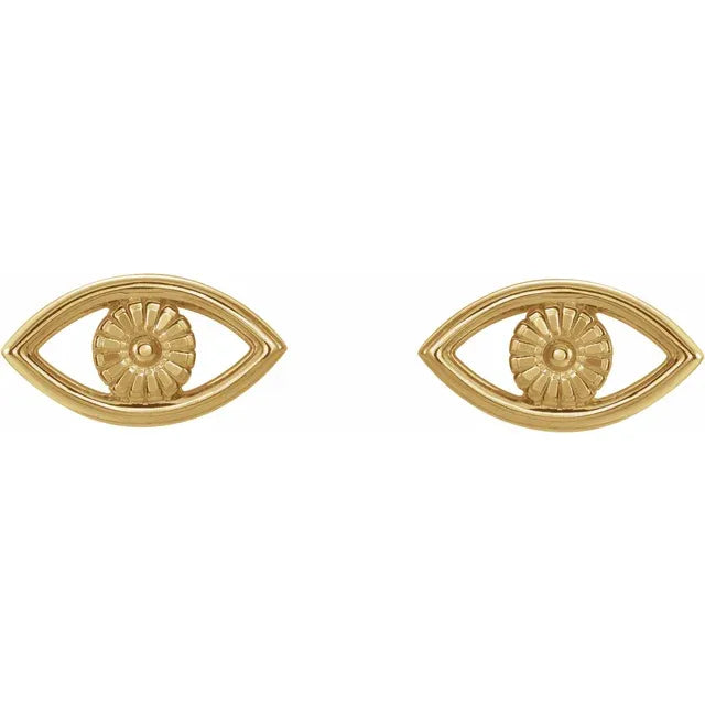 Timeless evil eye studs crafted in 14K gold. These delicate earrings feature the protective symbol in a classic stud design, perfect for everyday wear or layering.