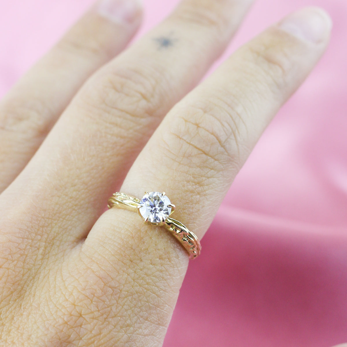 FACETED MATRIX SOLITAIRE ENGAGEMENT RING | 14K GOLD & MOISSANITE