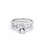 Paired with our solid 14k white gold pavé matrix contour band set with white diamonds.