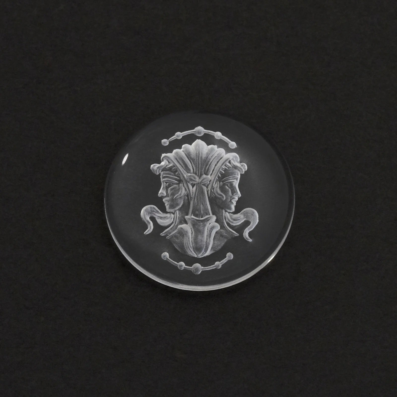 The Gemini Zodiac Intaglio Necklace showcases a hand-carved quartz crystal featuring twin faces — symbolizing duality, curiosity, and expressive intelligence. This talisman celebrates your multidimensional nature and encourages you to stay open, communicative, and ever-curious.