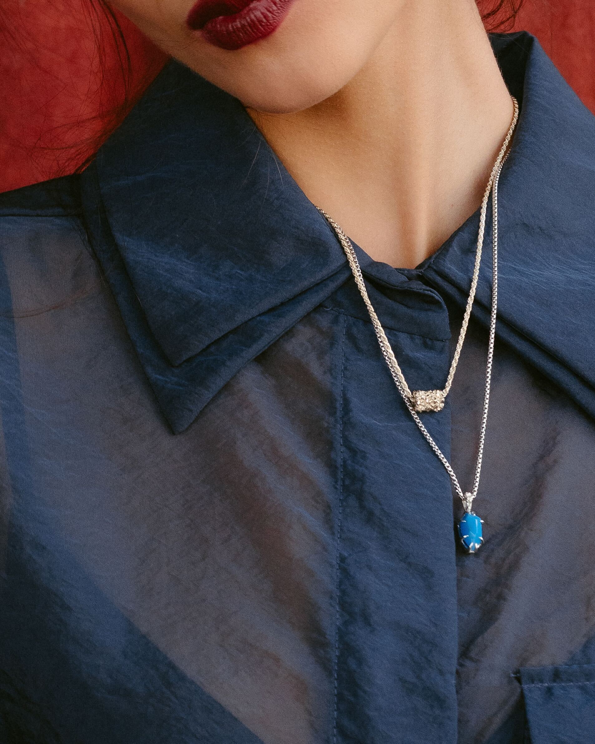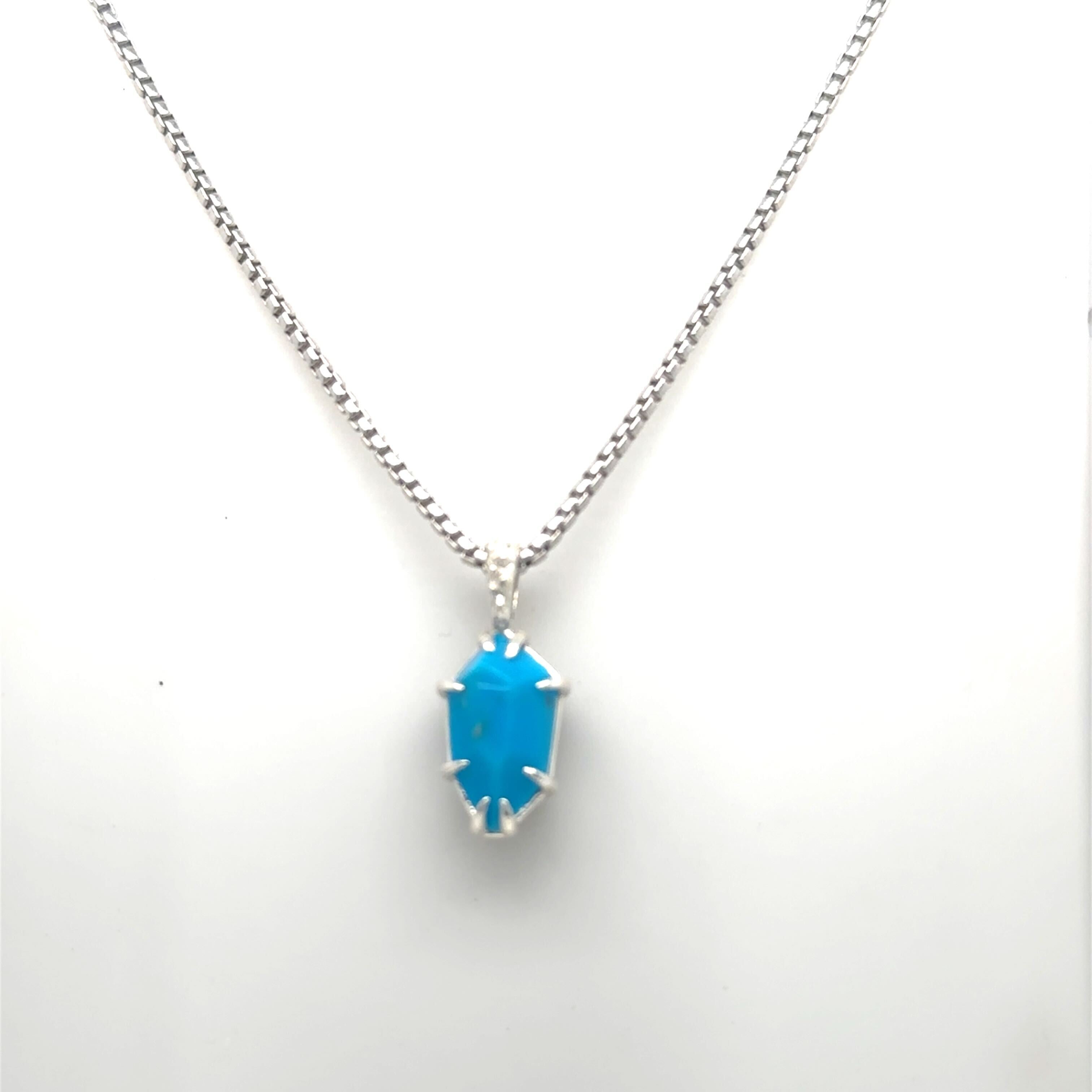 A one-of-a-kind talisman for the humans who walks between worlds. The Guardian of the Veil Necklace features a custom-cut turquoise gemstone shaped in the style of a Herkimer diamond, complete with striking, angular facets that catch the light like a portal opening. Its vivid blue carries the ancient, protective frequency of turquoise, long believed to be a guide stone for intuitives, travelers, and truth-seekers.