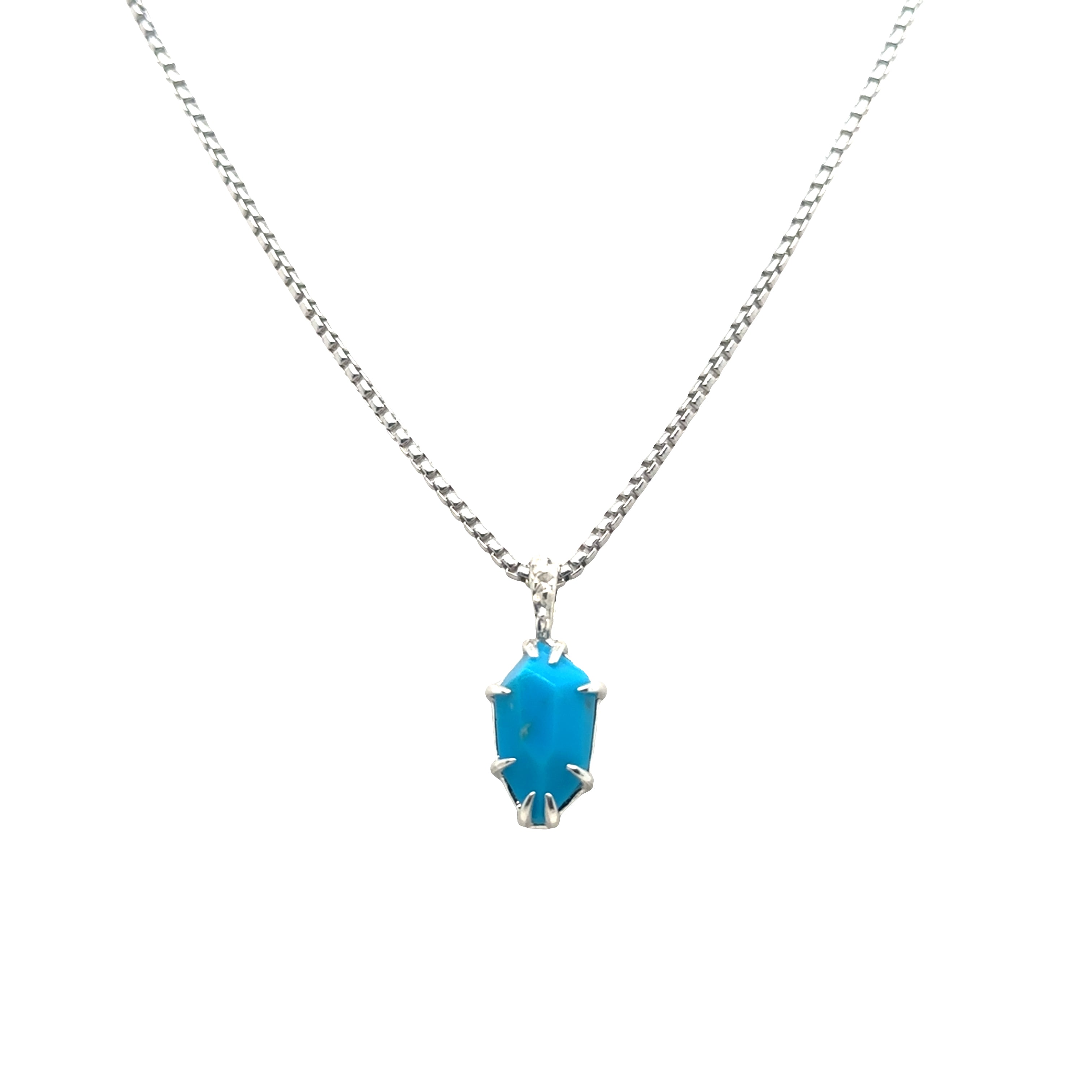 This Guardian of the Veil necklace was meticulously handcrafted by Angela Monaco Jewelry in Philadelphia, featuring a custom-faceted Sleeping Beauty turquoise gemstone set in recycled sterling silver.