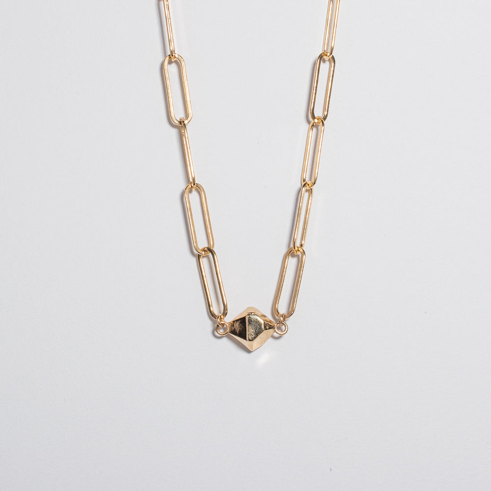 CRYSTAL NUGGET CONNECTOR WITH PAPERCLIP CHAIN