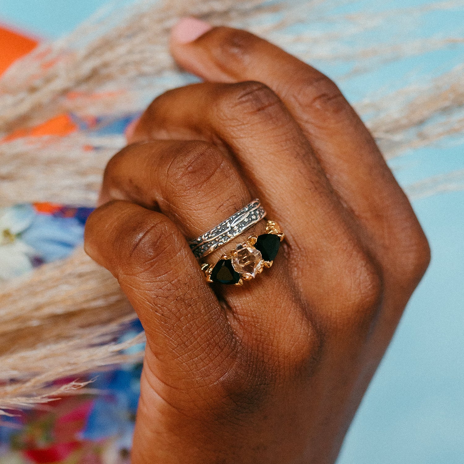 Our signature matrix texture inspired by roots and rocks band made in Sterling Silver