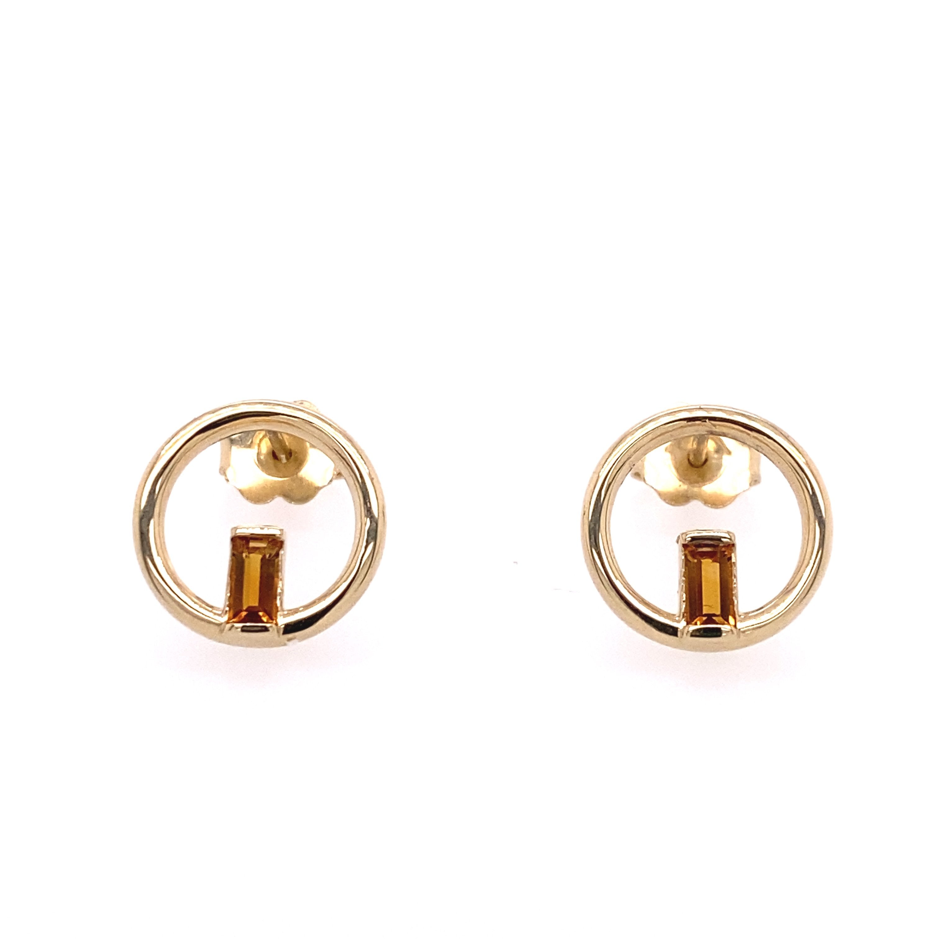 ENCIRCLED BAGUETTE STUDS | 14K GOLD & CITRINE