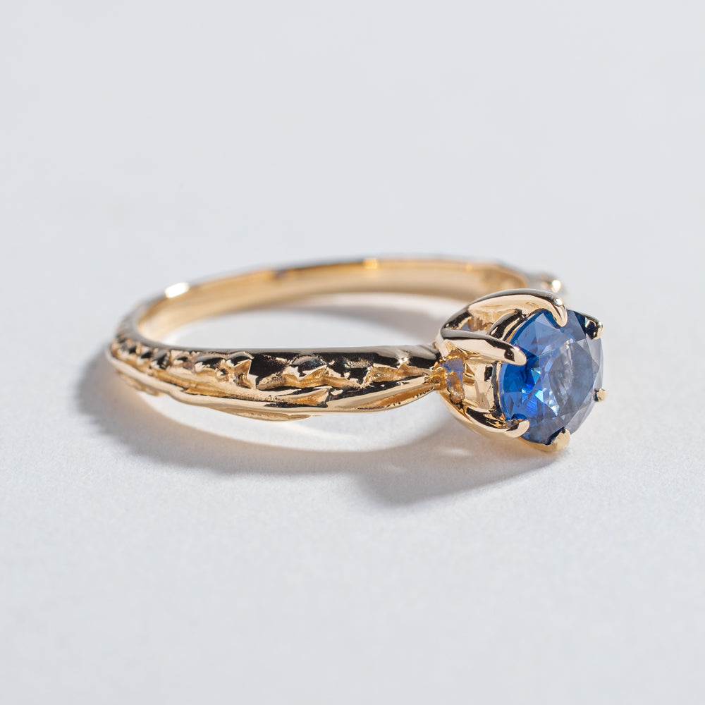 FACETED MATRIX SOLITAIRE ENGAGEMENT RING | 14K GOLD & SAPPHIRE