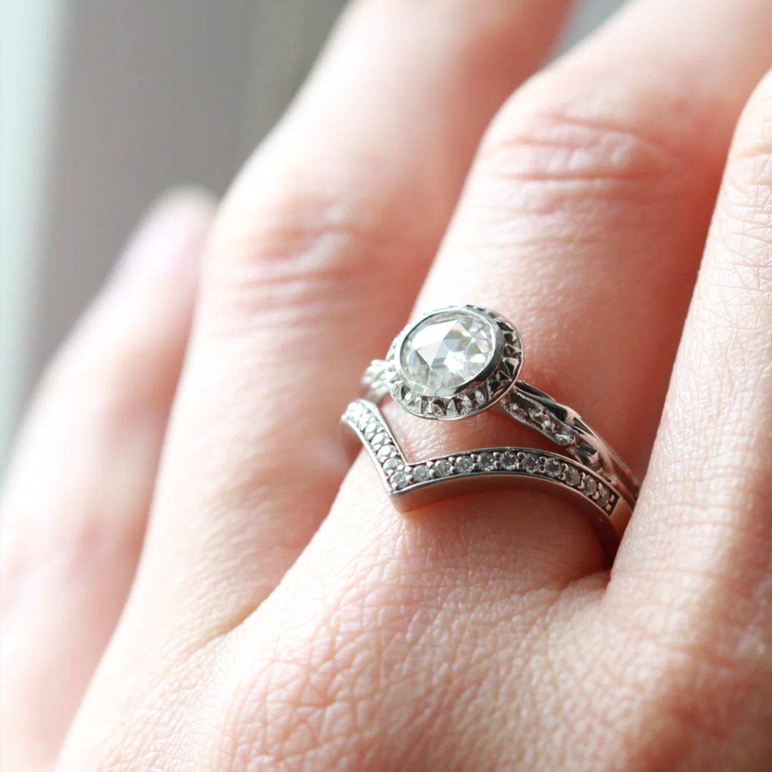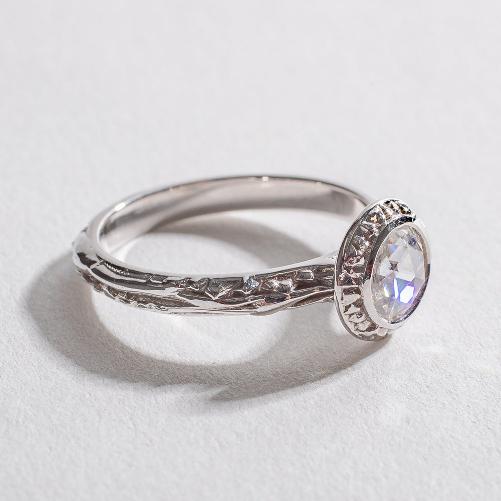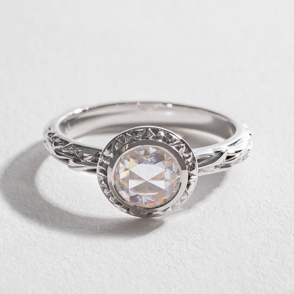 (1) 6mm 1ct rose-cut moissanite in a bezel setting.