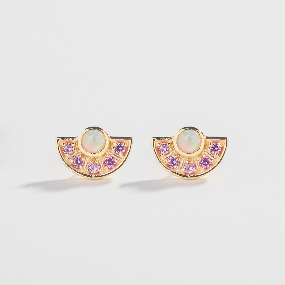 OPAL FAN STUDS | 14K GOLD & PINK SAPPHIRE