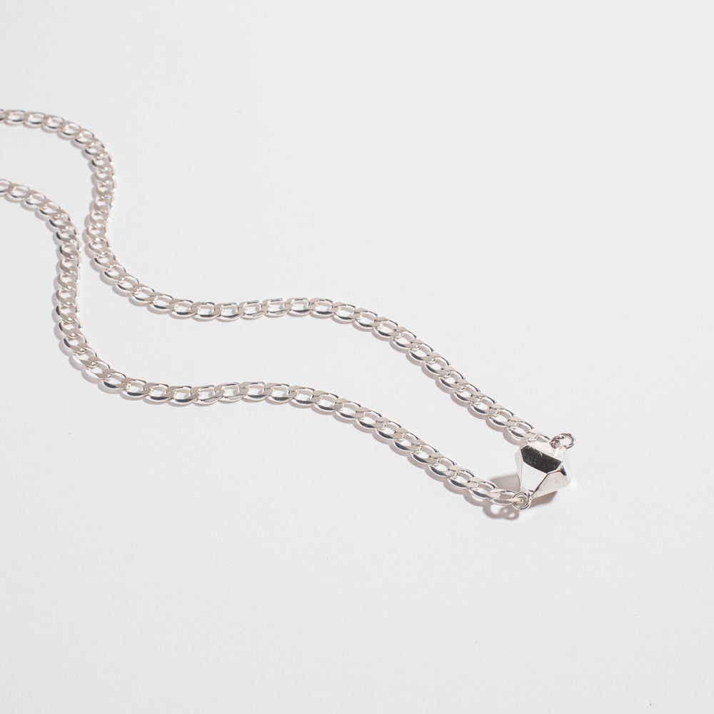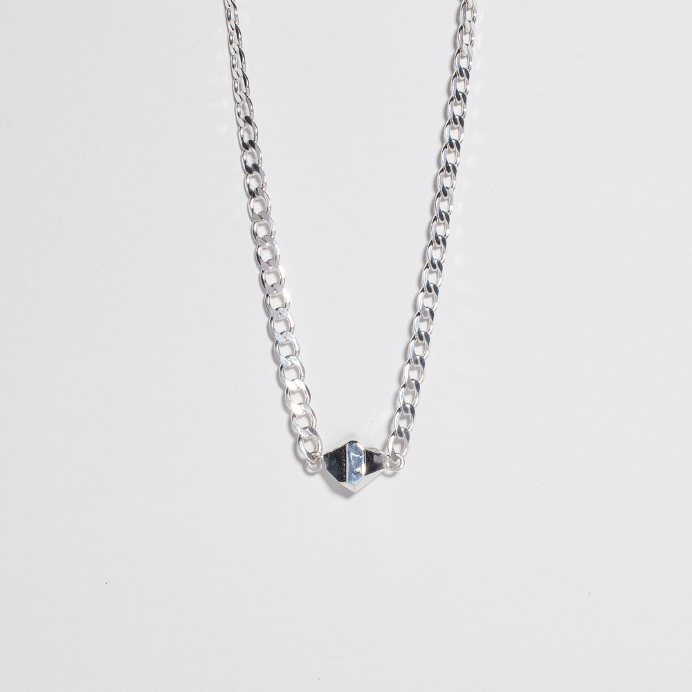 Angela Monaco Jewelry's signature nugget, reimagined in an edgy design. One 16 inch curb chain holds a nugget charm at its center.