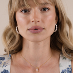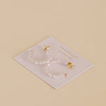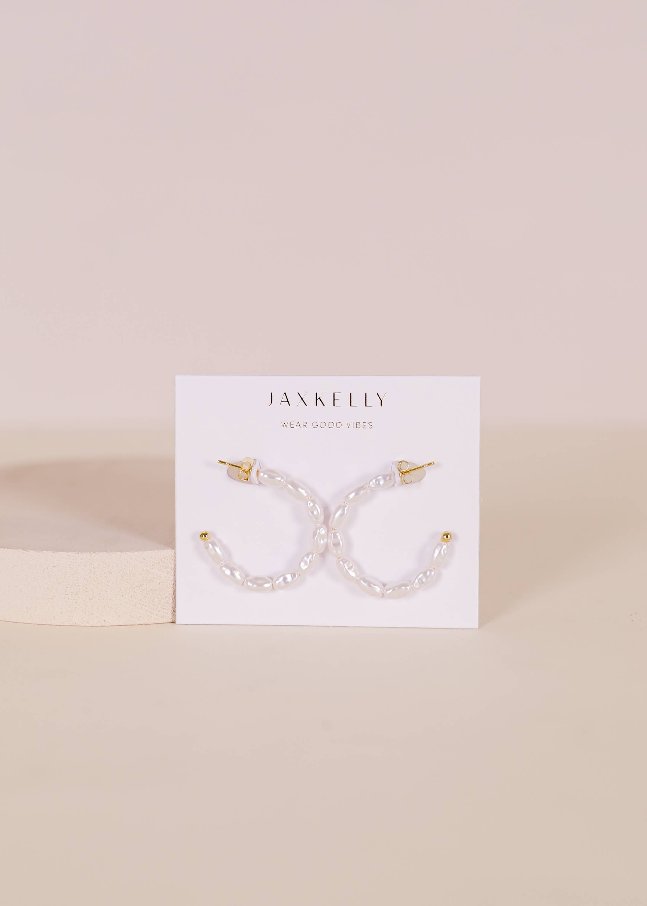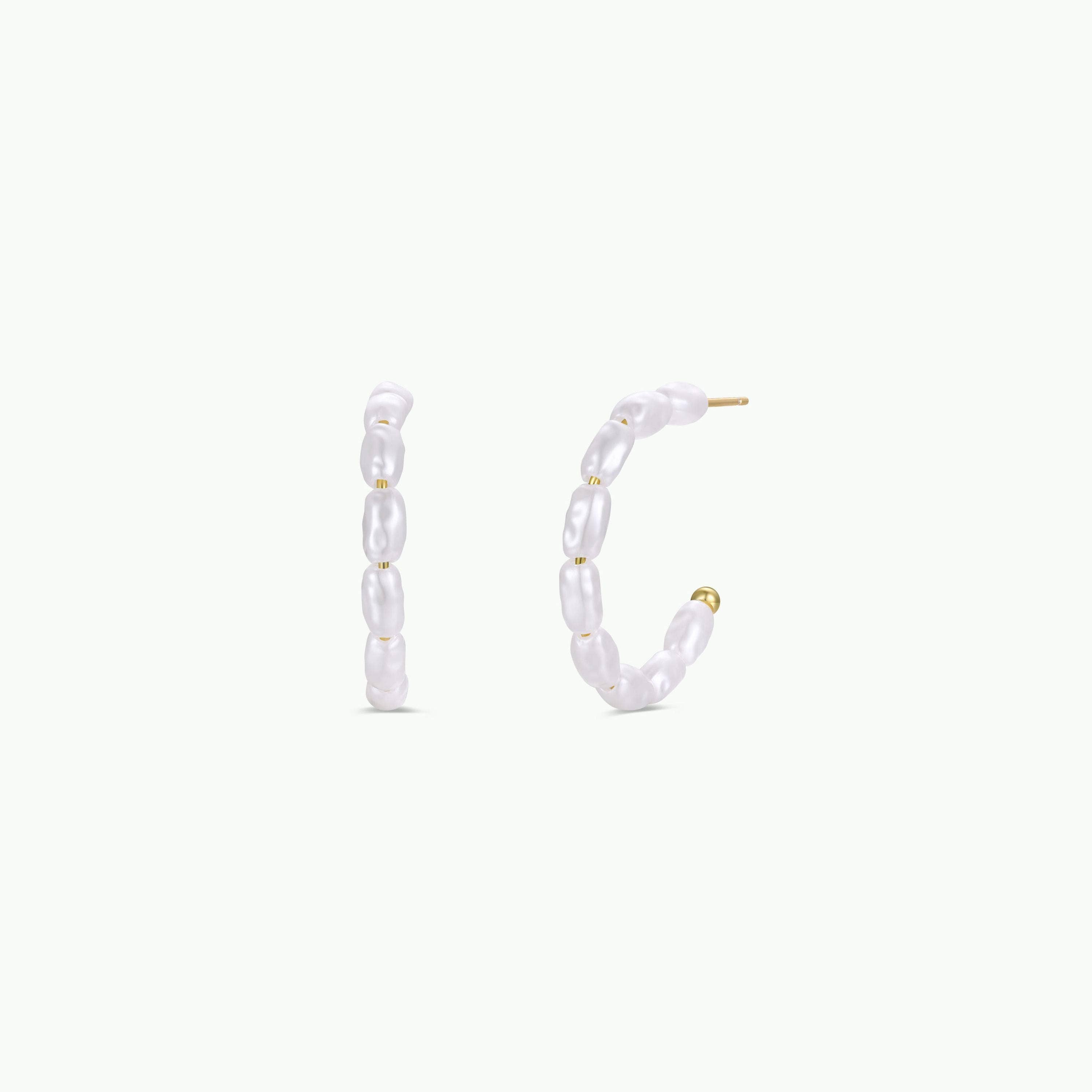 A timeless, vintage-inspired hoop adorned with white freshwater pearl beads for an elegant touch. Tarnish Free - Long lasting protective coating safeguarding your jewelry from sweat, water, and more.