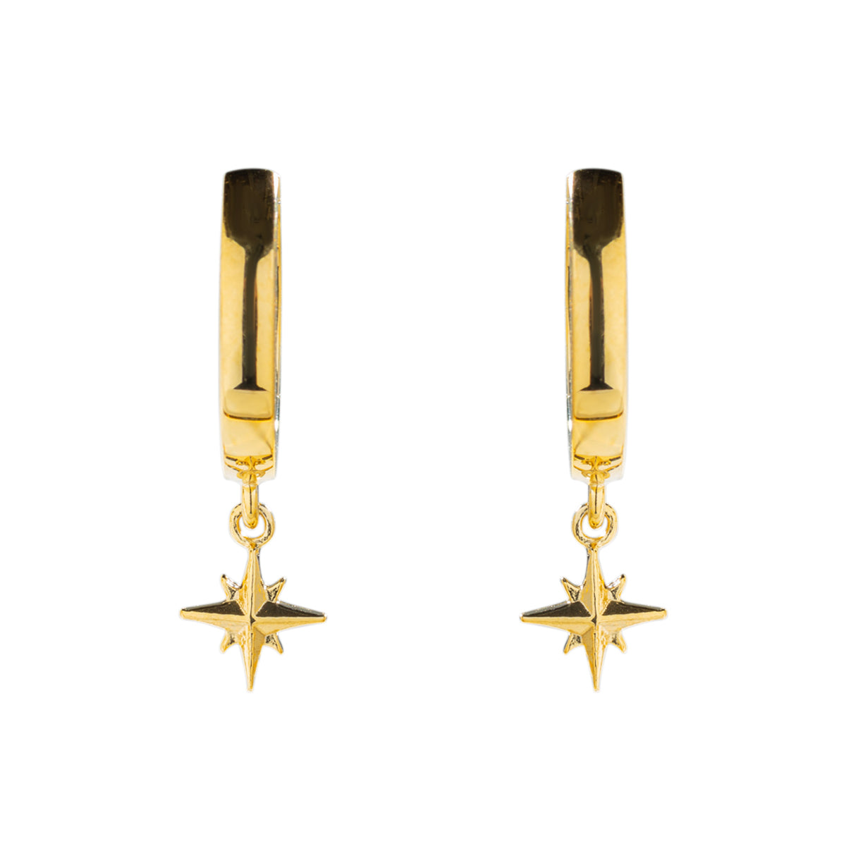 Navigate by inner wisdom with these North Star-inspired gold-filled or sterling hoops featuring celestial star charm dangles.