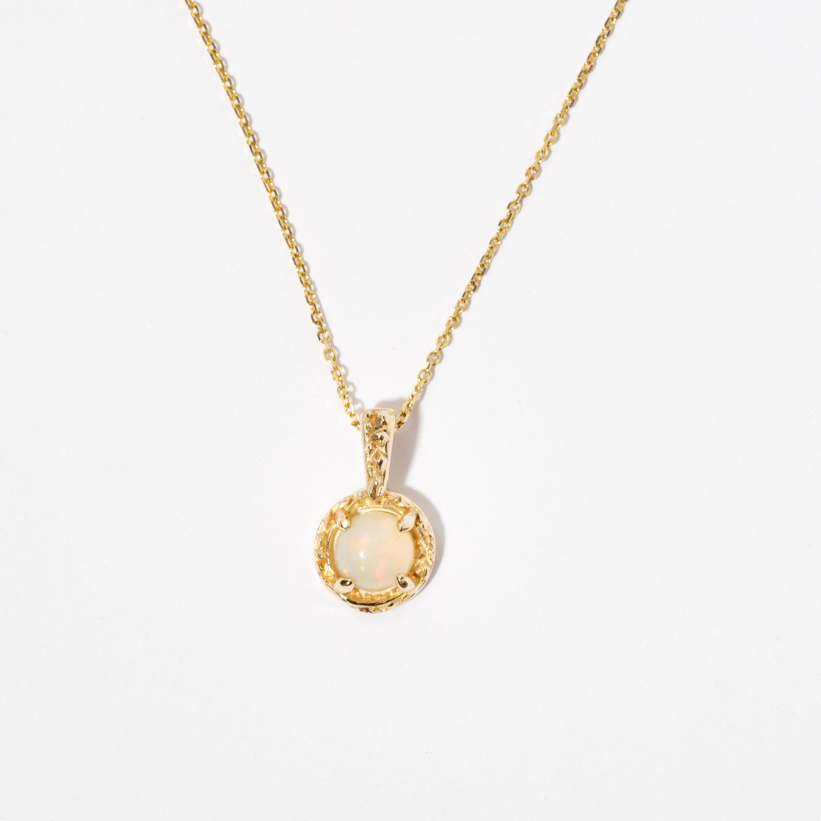 Petite yet powerful design. Crystalline prongs set a 6mm rose cut Australian opal.
