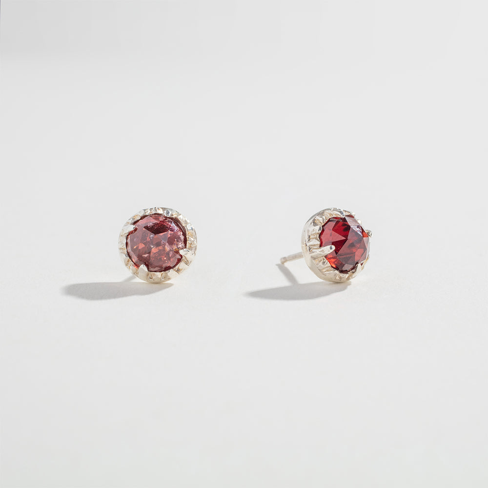 Petite yet powerful design with crystalline prongs setting a 6mm rose cut garnet.