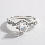 A solid sterling silver textured band that varies from 2-3mm in width with one raw Herkimer Diamond (roughly 6x8mm) that rests 6mm above the finger.
