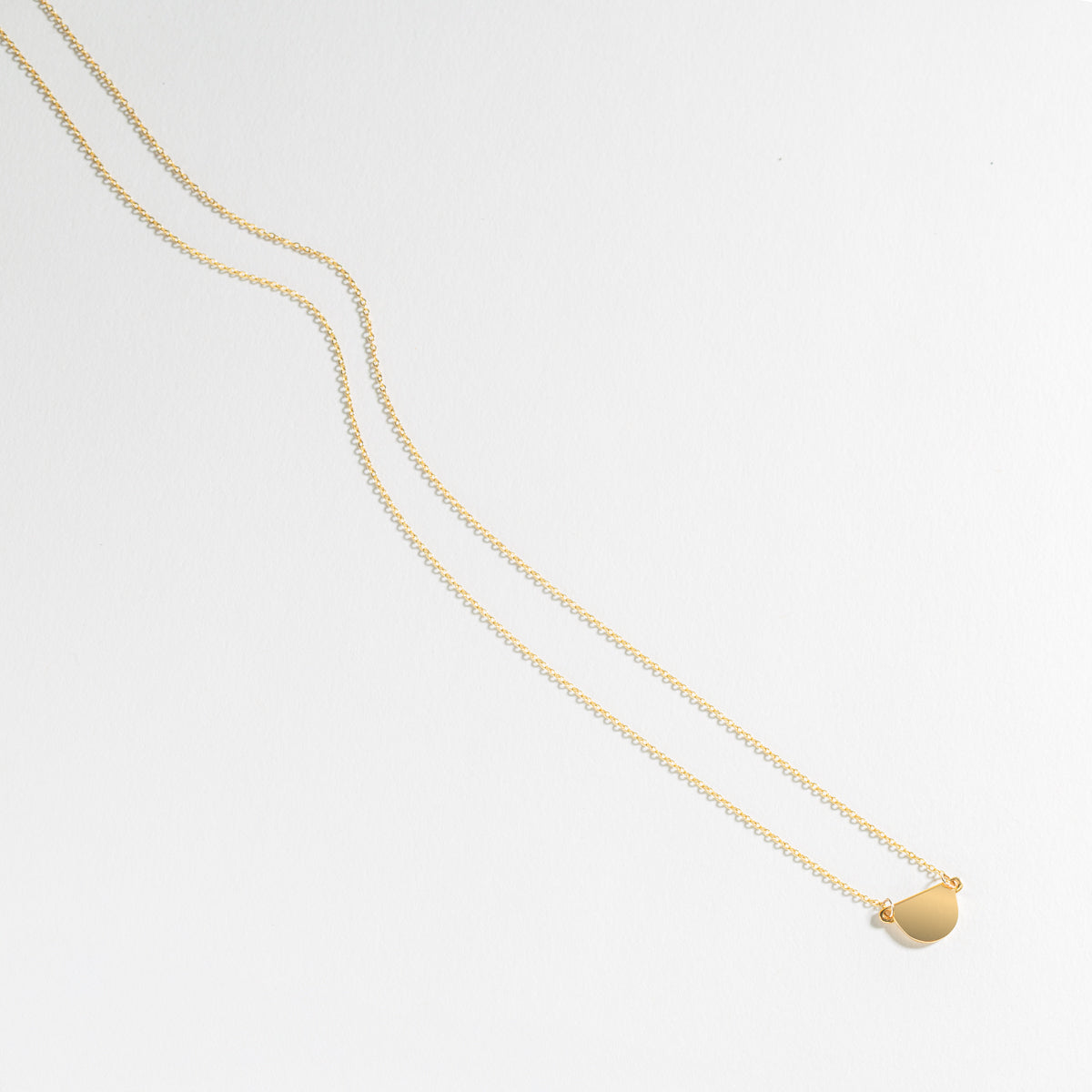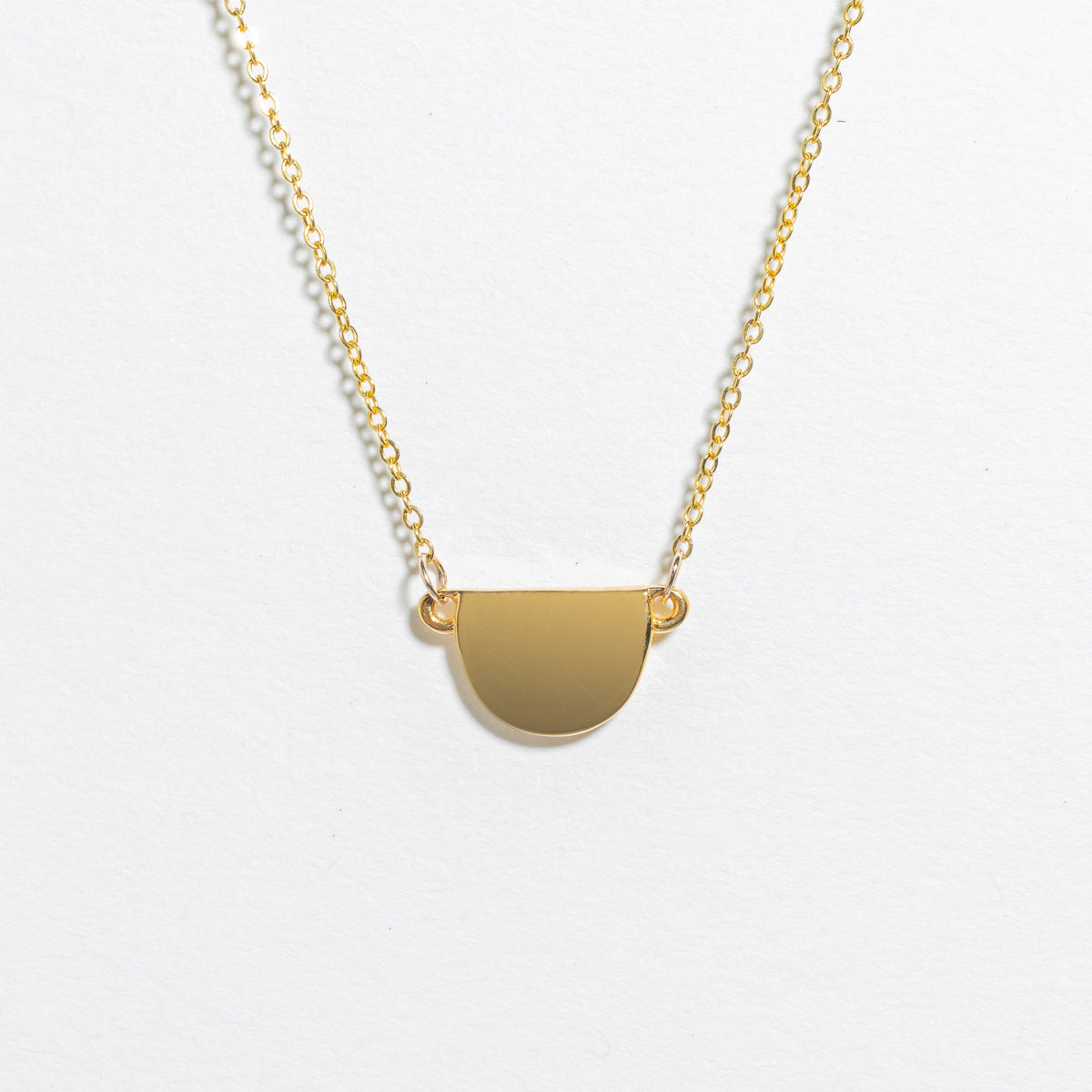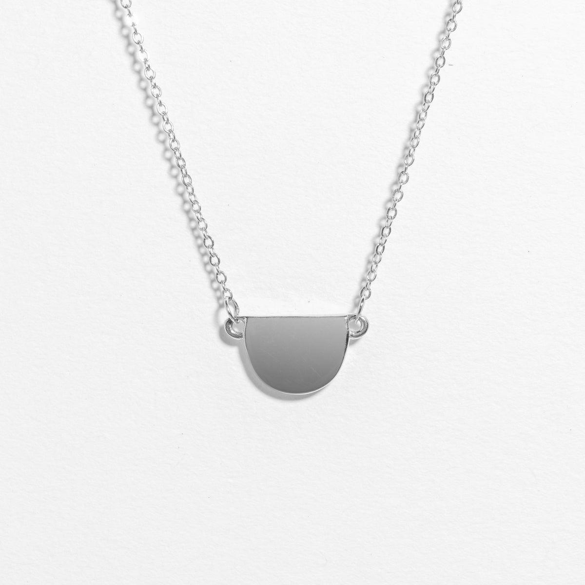 Delicate half-moon pendant in sterling silver or gold-filled, suspended on a thin chain. Understated elegance for everyday wear or layering. Timeless design that complements any style.