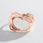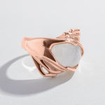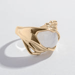 Set from underneath leaving the entire face of the moonstone visible and somewhat glowing from within, Angela Monaco Jewelry's, Moon Connection Ring features two hands connecting and highlighting a beautiful moonstone known for promoting inner growth and strength.