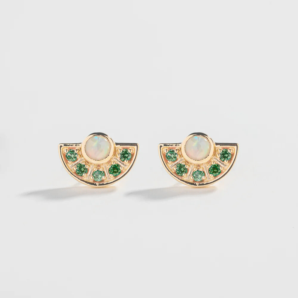 OPAL FAN STUDS | 14K GOLD & EMERALD