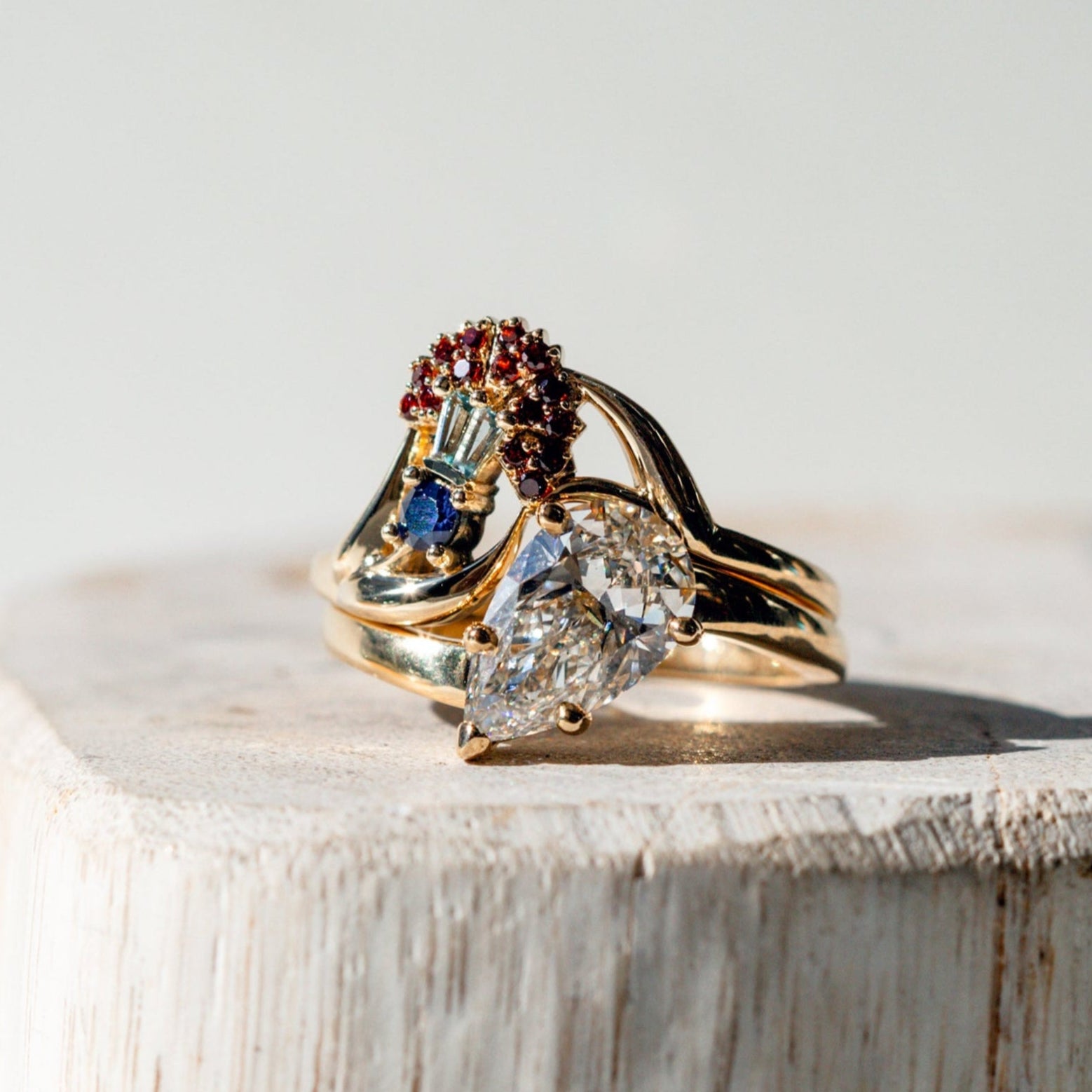 ORNATE STACKING ENGAGEMENT RING AND WEDDING BAND SET