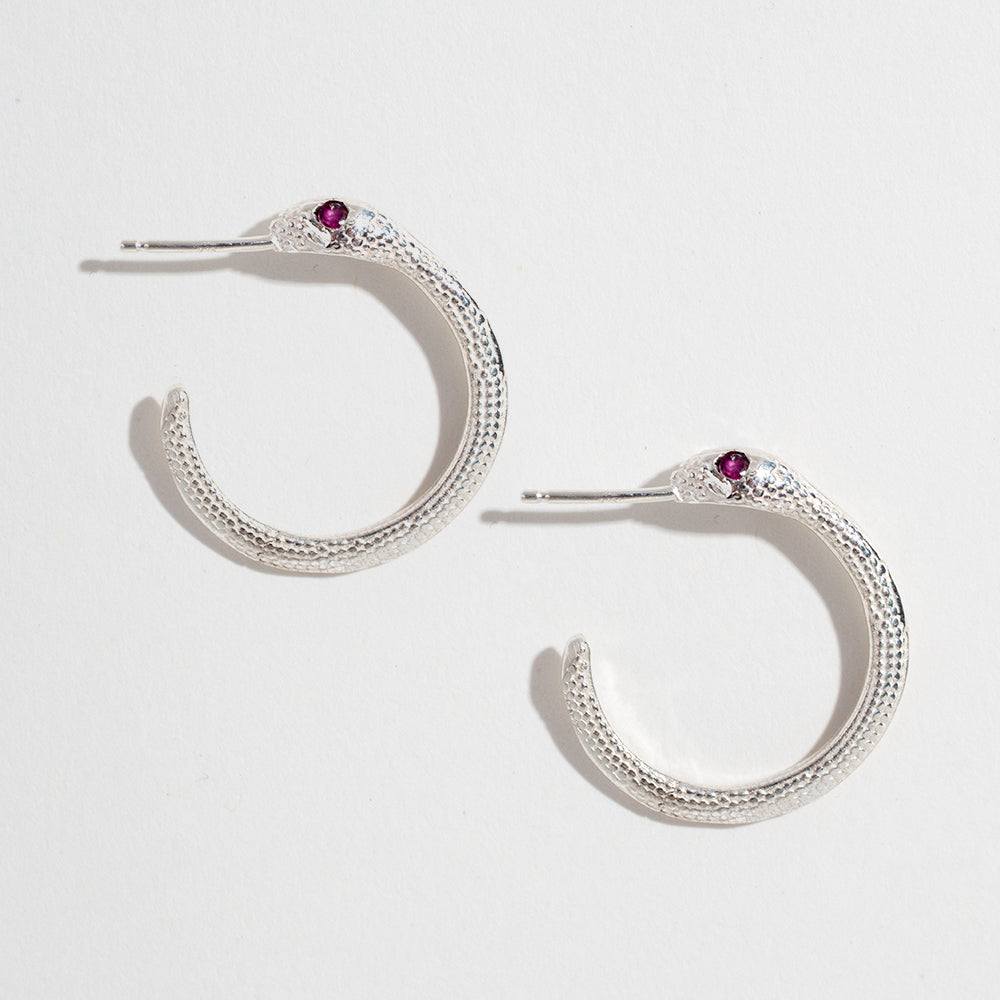 OUROBOROS SNAKE HOOP | STERLING SILVER & RUBY