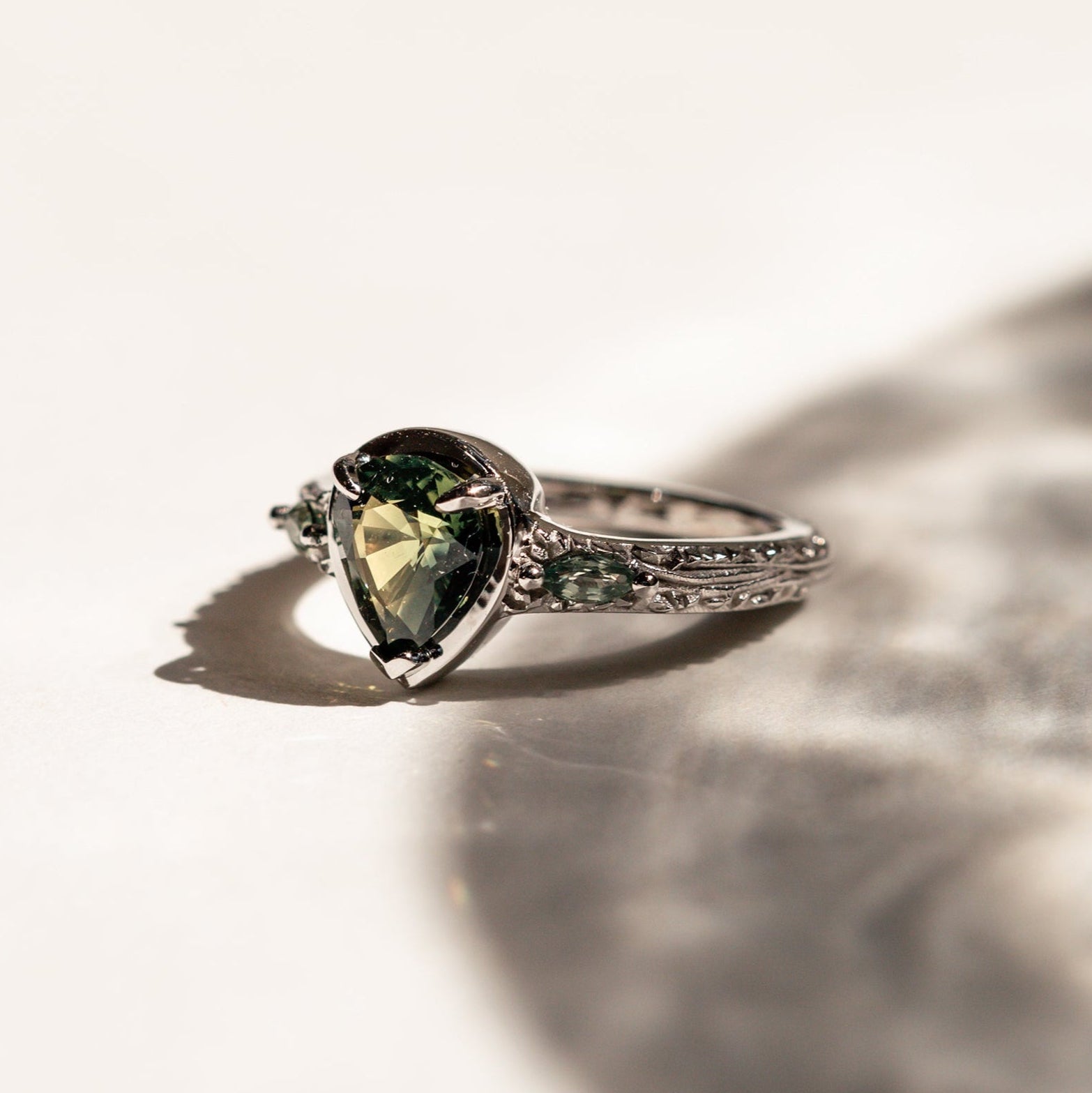 PEAR SAPPHIRE MATRIX TEXTURE ENGAGEMENT RING