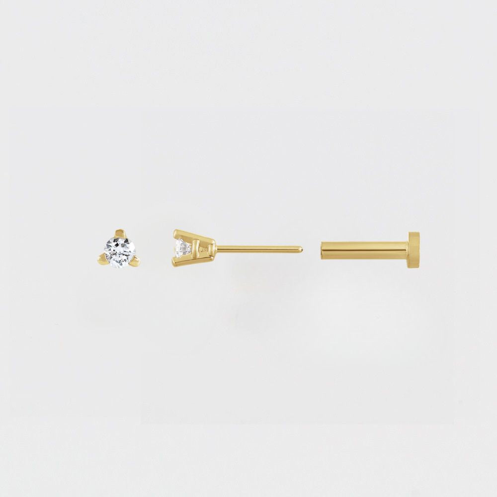Genuine natural diamond stud in 14K yellow gold with a secure prong setting and comfortable flat back design. The press-fit mechanism keeps it firmly in place for everyday wear.