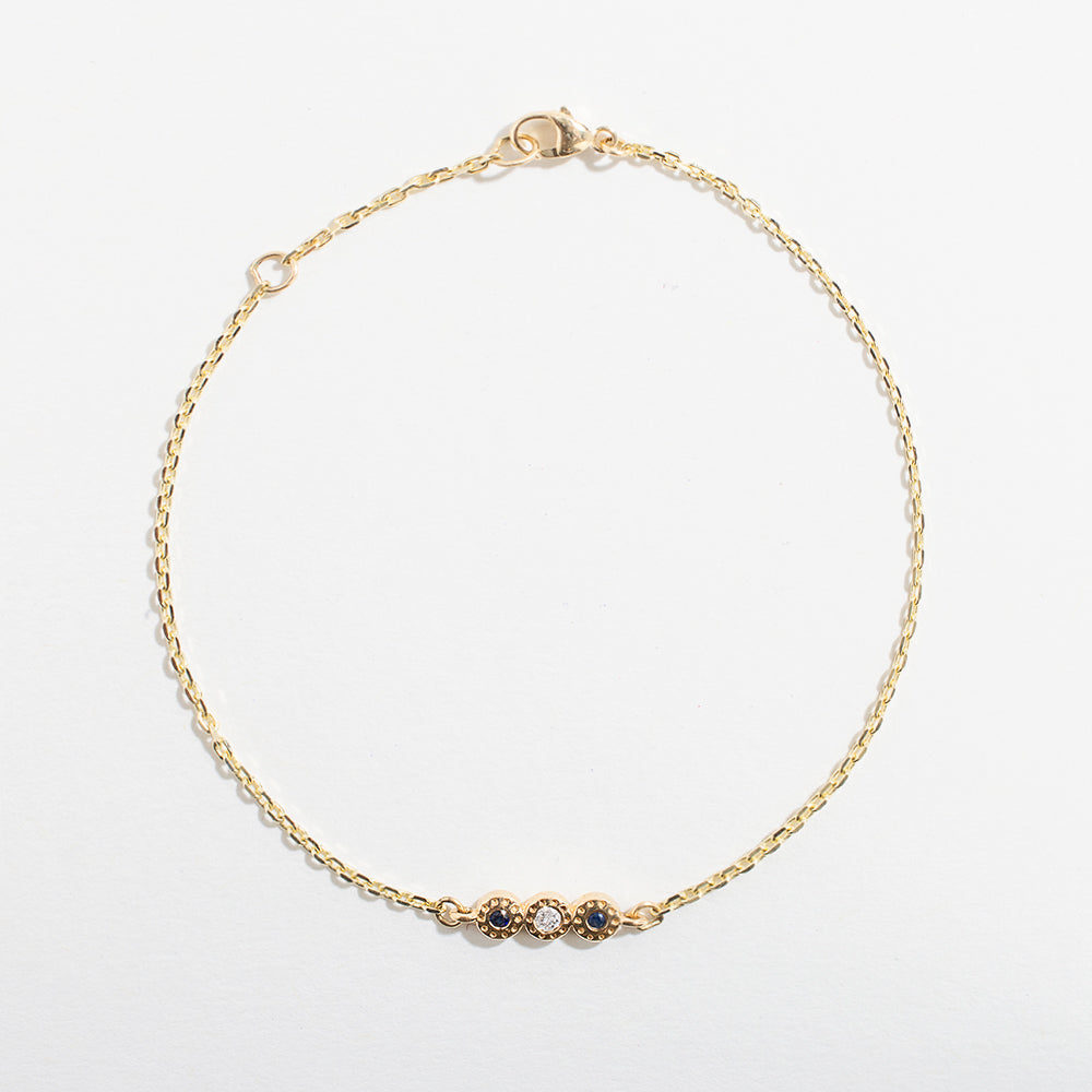 SAPPHIRE & DIAMOND BEZEL BRACELET | 14K GOLD | DIAMOND CUT CHAIN