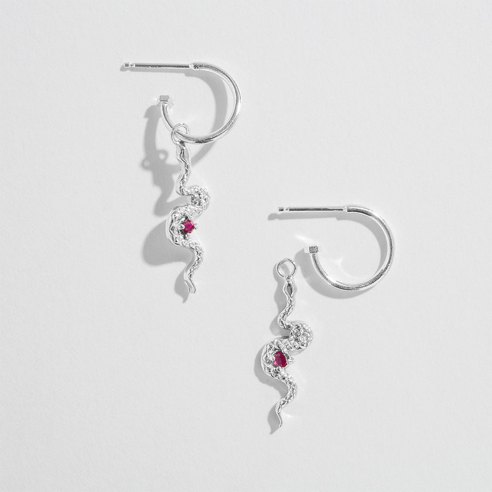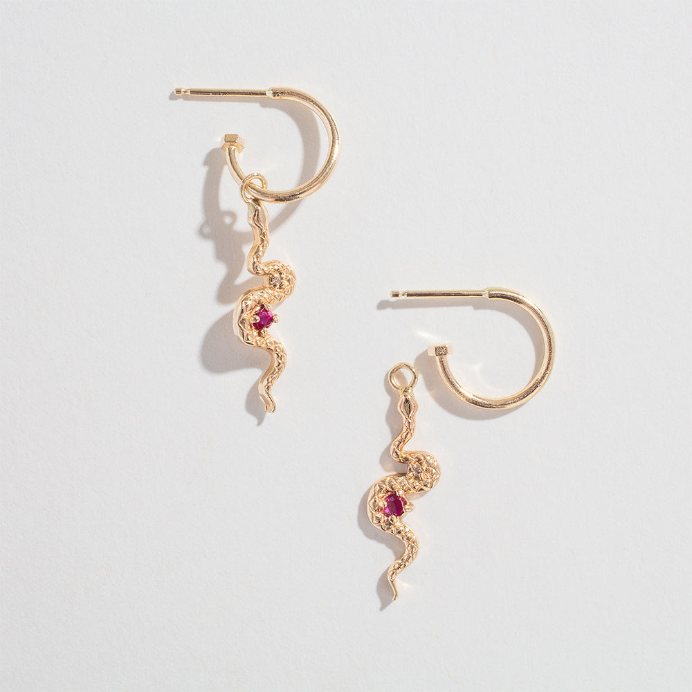 SNAKE HUGGIES | 14K GOLD | RUBY + DIAMOND