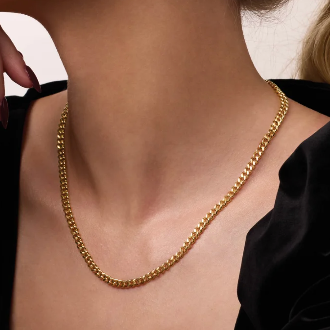 Embrace your inner power with the Sovereign Link Curb Chain, a bold statement piece that commands attention. This chain design features a substantial gold-filled 4.8mm wide curb design that catches light with every movement, perfect for those who dare to stand apart. Whether you layer it for an edgy, rebellious aesthetic or wear it solo as a refined talisman, this chain adapts to your energy.