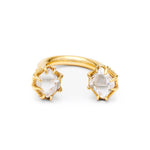 A solid Sterling Silver open-ended band that is 3mm round with two 7x10mm raw Herkimer Diamonds that rest approximately 10mm above the finger.