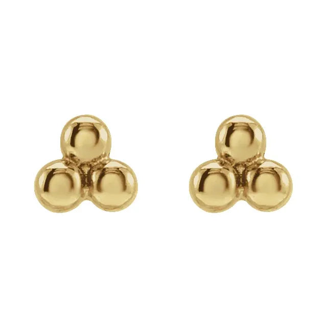 Delicate 14k gold studs featuring three perfectly aligned beads.